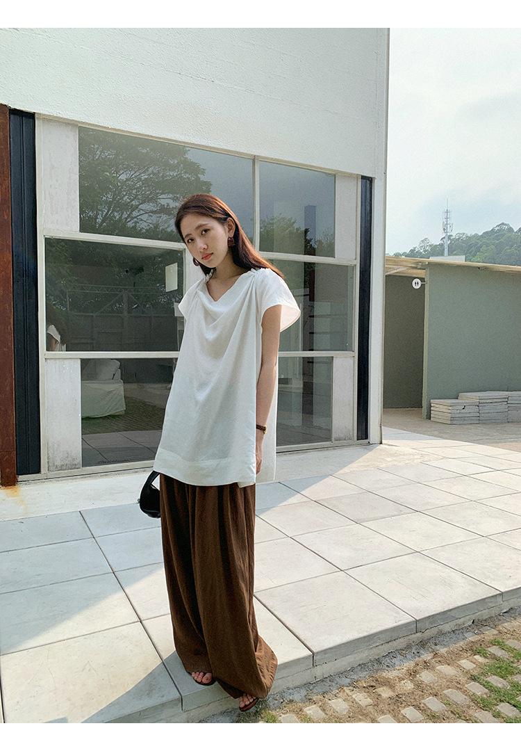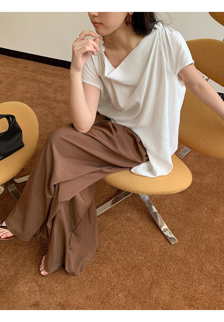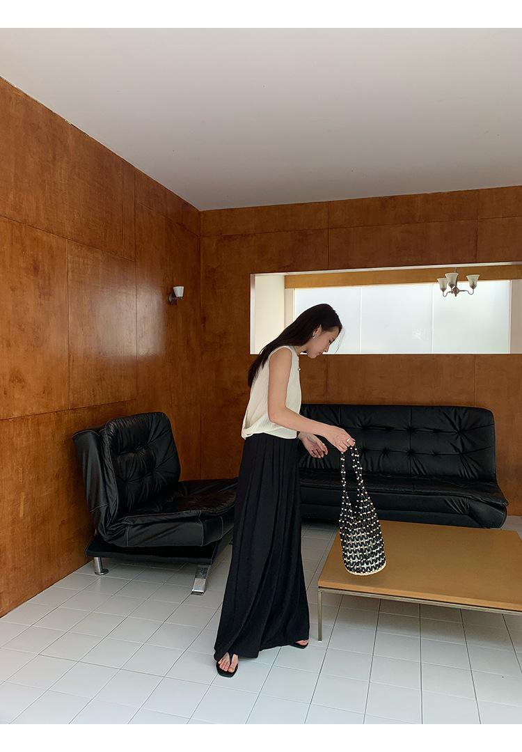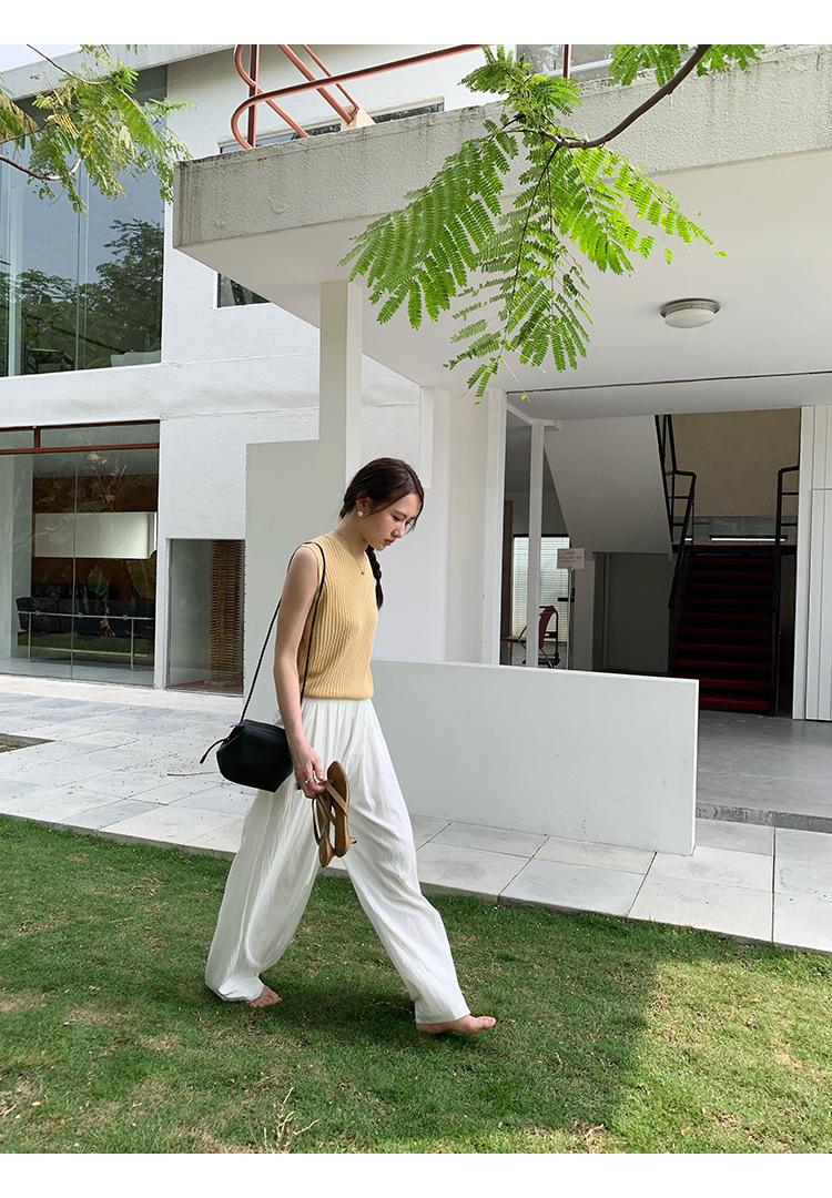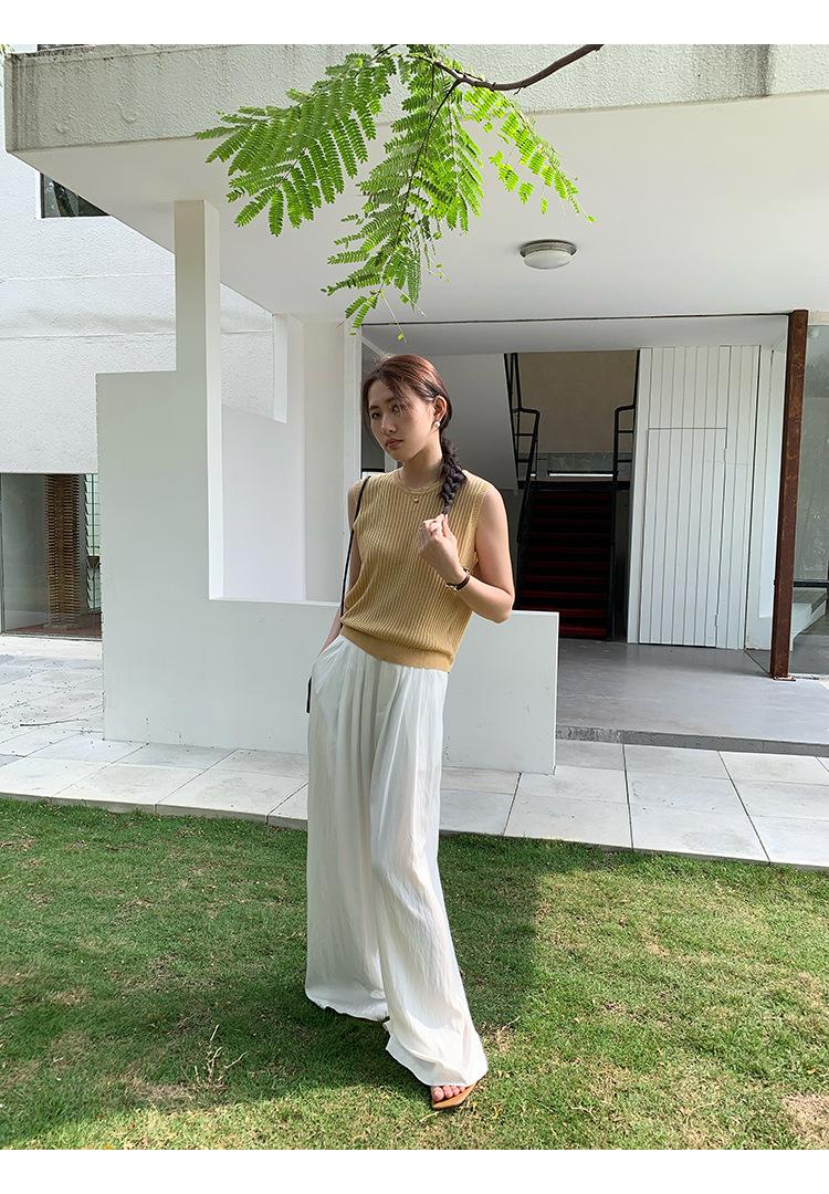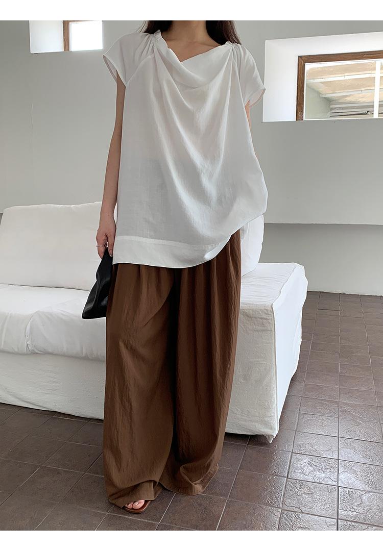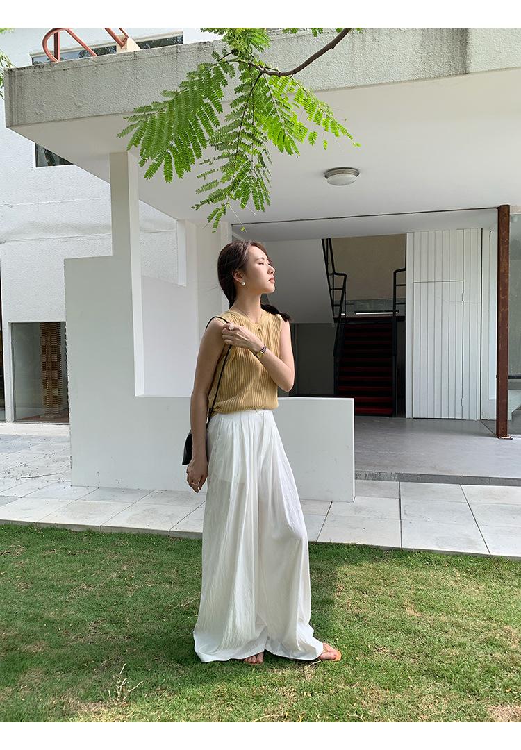 Pantalones Rectos Blancos Wanwei Largos hasta el Piso Drapeados para Mujer 2024 Verano Nuevo Estilo Plisados de Cintura Alta Versión Ancha Casuales Pantalones Largos 163