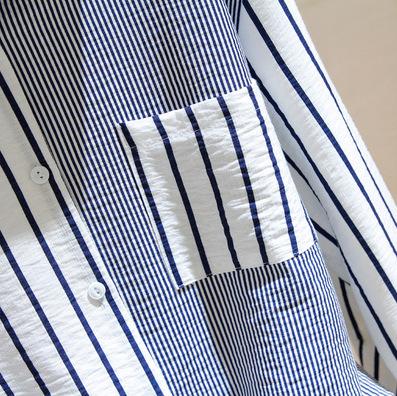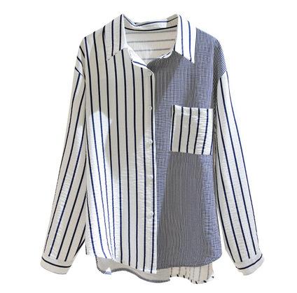 Camisa de manga larga a rayas con costuras para mujer, diseño Sense Niche 2 023, camisa holgada coreana de principios de otoño, top de moda