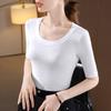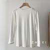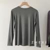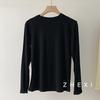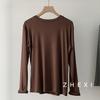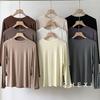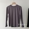 2025 Otoño Nuevo Básico Color Sólido Camiseta Interior para Mujer Cuello Redondo Top Interior Modal Manga Larga Camiseta Mujer 1552