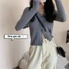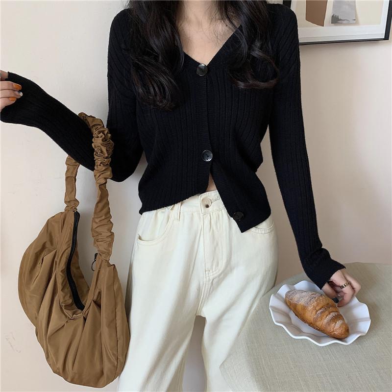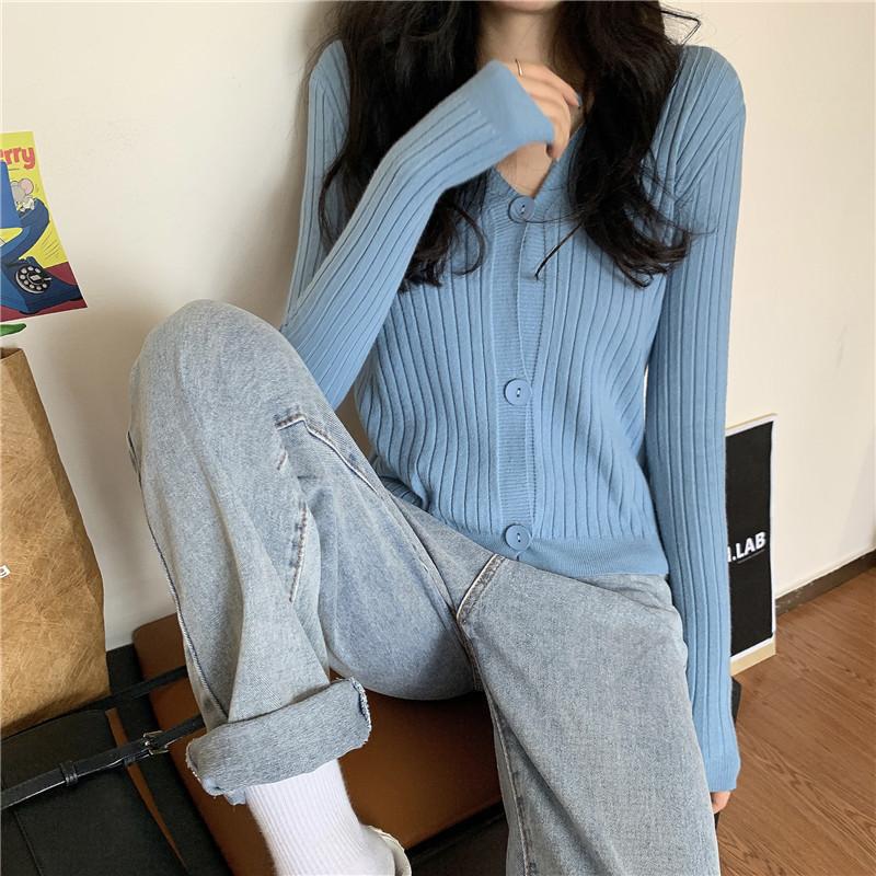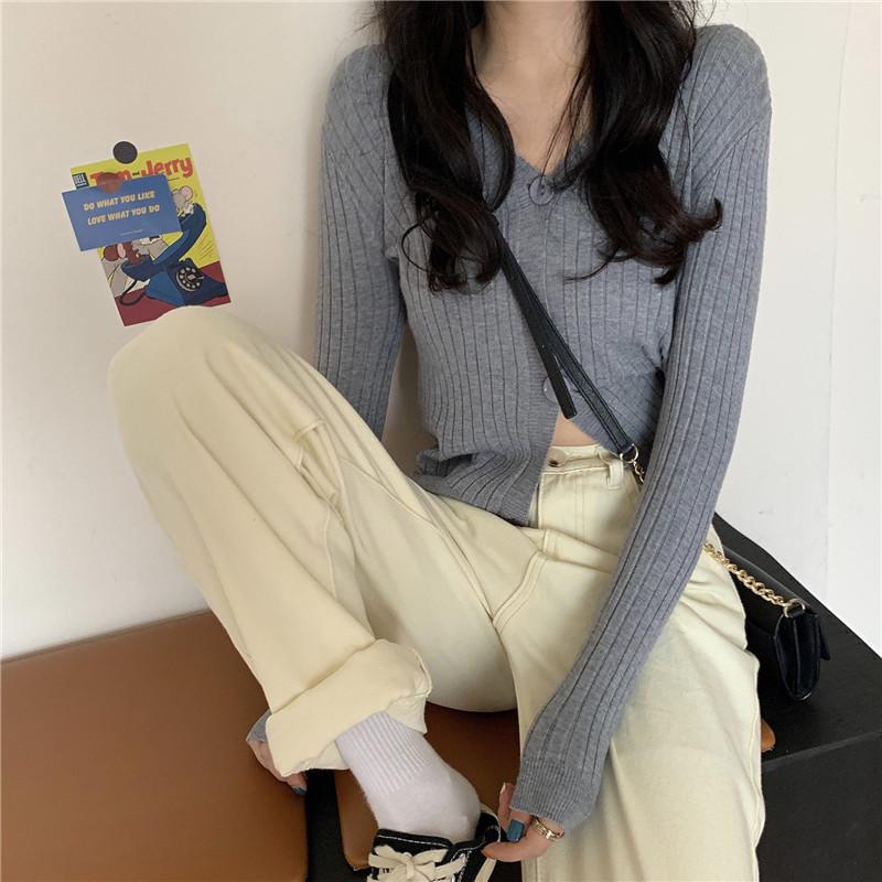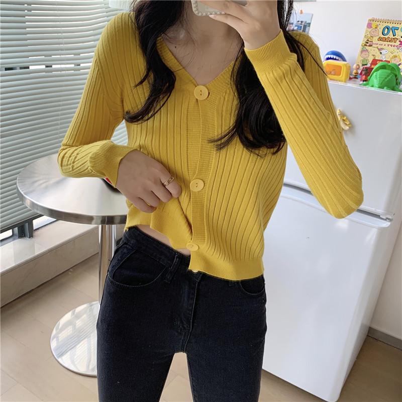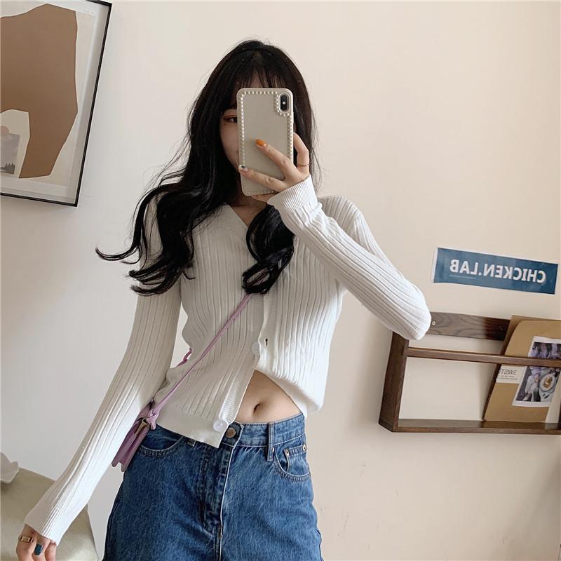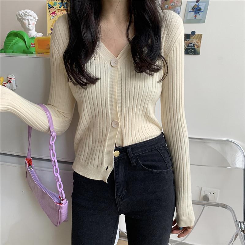 Chaqueta tipo cárdigan de manga larga para mujer, estilo coreano, elegante, con escote en V y clavícula, holgada, combinable con todo, de punto corto