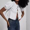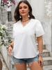 Comercio Exterior Transfronterizo Primavera-Verano 2022 Ropa de Mujer Top Independiente Cuello en V Bordado Elegante Casual Color Sólido Top de Manga Corta para Mujer