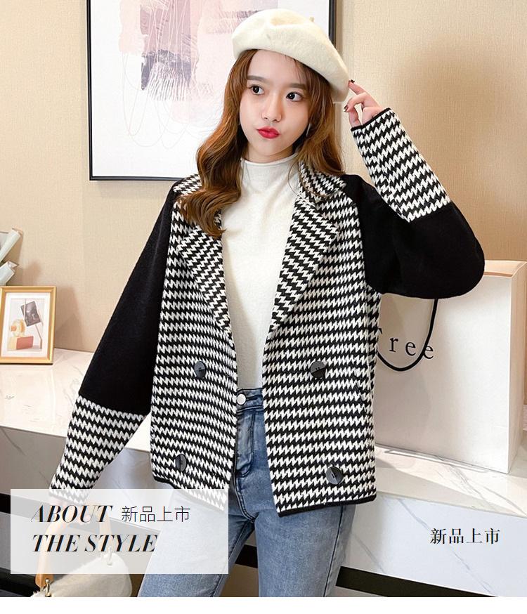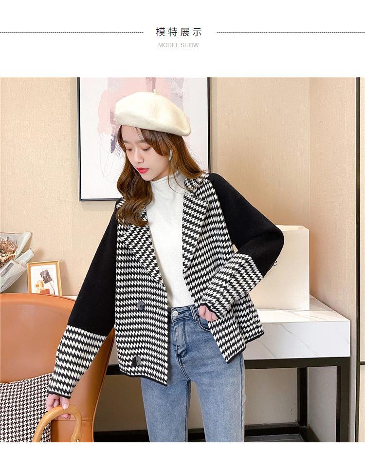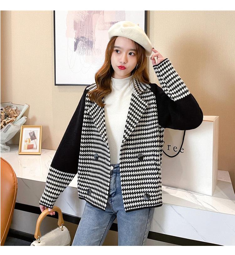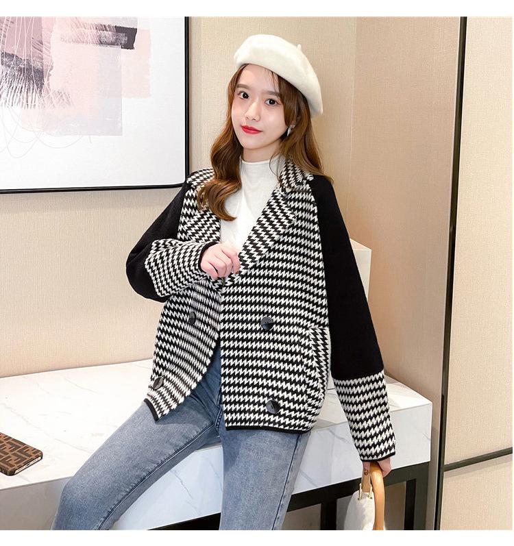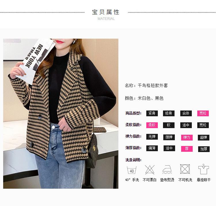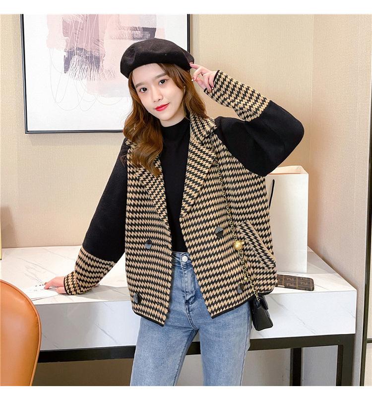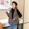 2025 Nuevo Traje de Nailon Doble Faz Cuello Saco Cuadros Corto Negro Estilo Coreano Suelto Elegante Cárdigan Chaqueta para Mujer