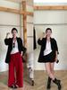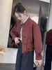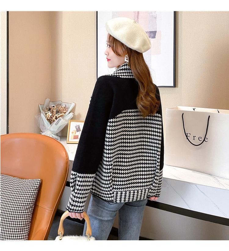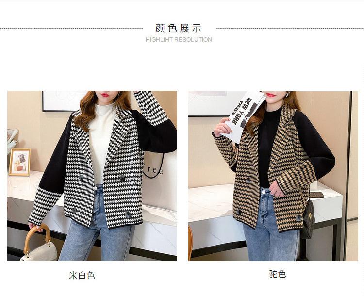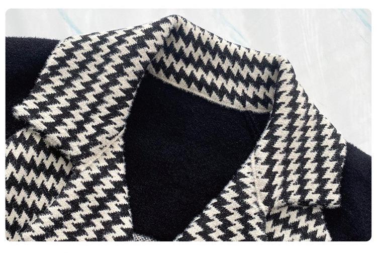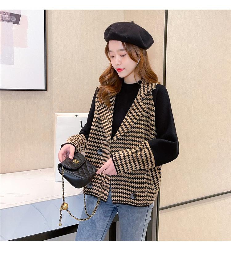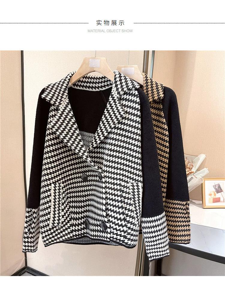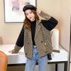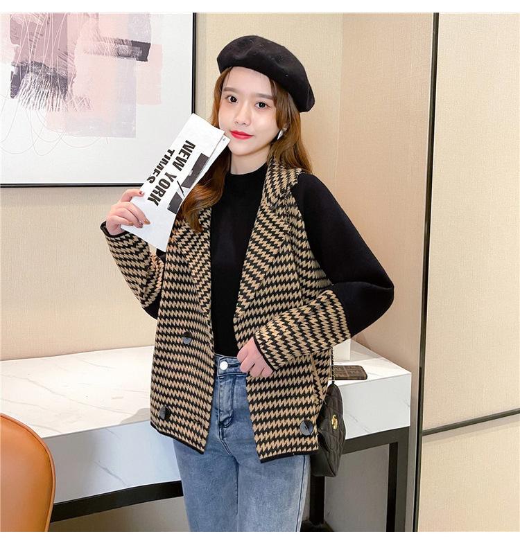 2025 Nuevo Traje de Nailon Doble Faz Cuello Saco Cuadros Corto Negro Estilo Coreano Suelto Elegante Cárdigan Chaqueta para Mujer