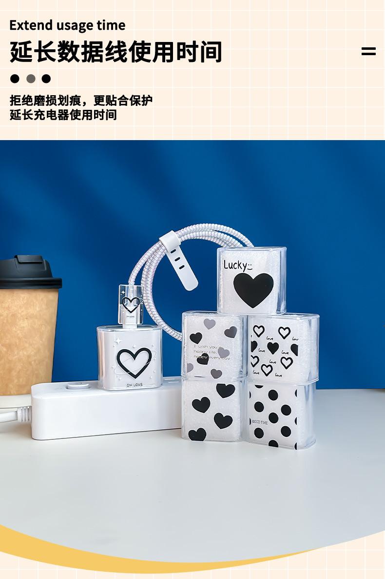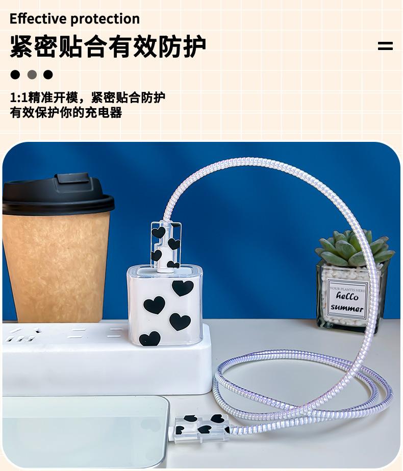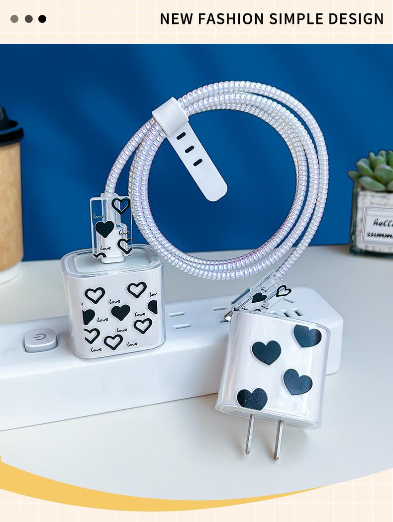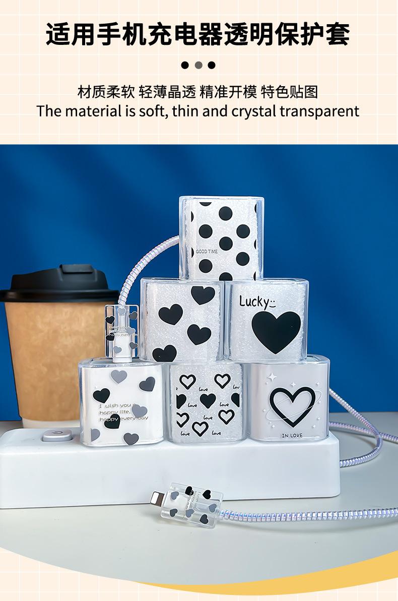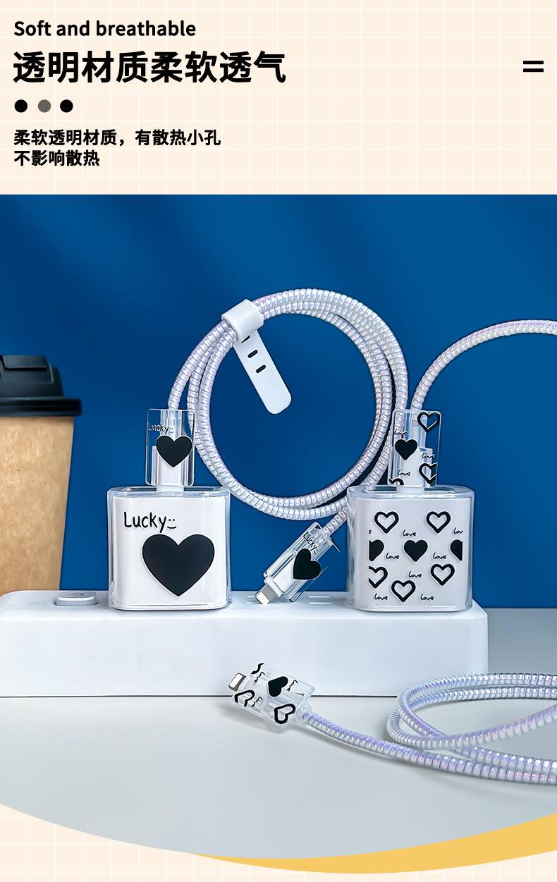 Adecuado para Cubierta Protectora de Cargador Apple 20W Teléfono Móvil 15/14 Cubierta Protectora de Cable de Datos Cordón Transparente Mordida Corazón
