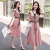 Falda Camisera de Algodón Suelta 2025 Nuevo Verano para Mujer Cintura Moda Versátil Color Puro Vestido Midi