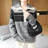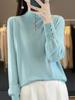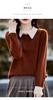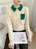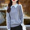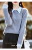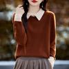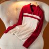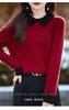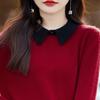 Suéter de Lana Pura con Cuello POLO de Dos Piezas Falsas para Mujer, Temperamento, Color de Contraste, Reductor de Edad, Camiseta Base de Punto, Suéter Rojo de Año Nuevo