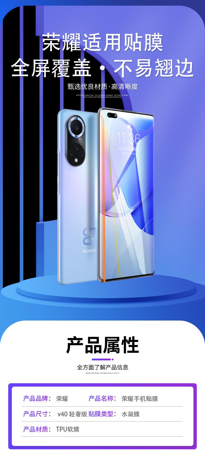 Adecuado para teléfono inteligente Glory v40 Película de coagulación de agua Edición de lujo ligera Pantalla completa TPU Protección ocular Película protectora de luz azul Punto