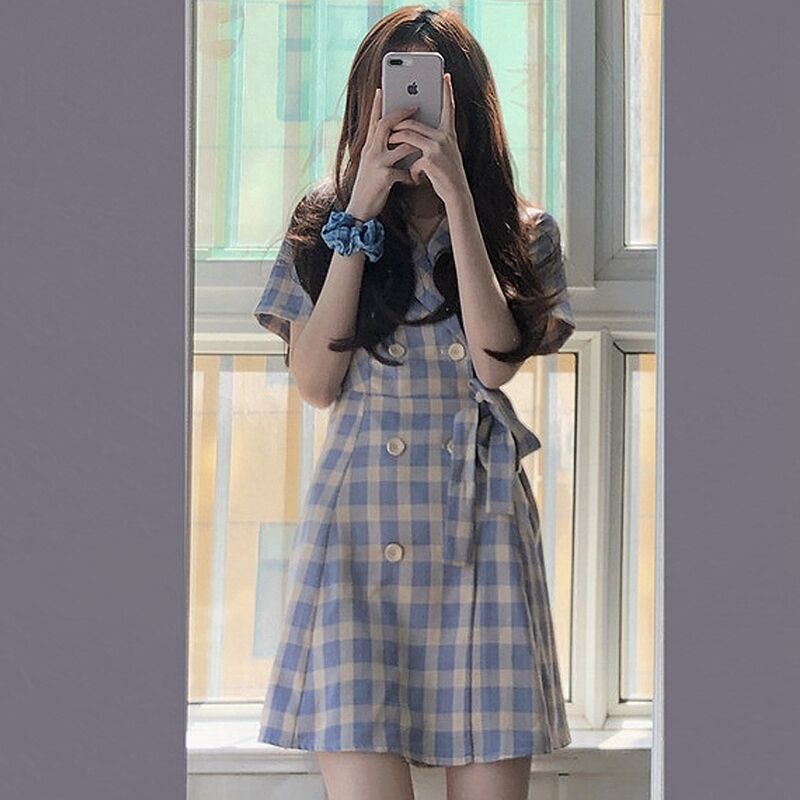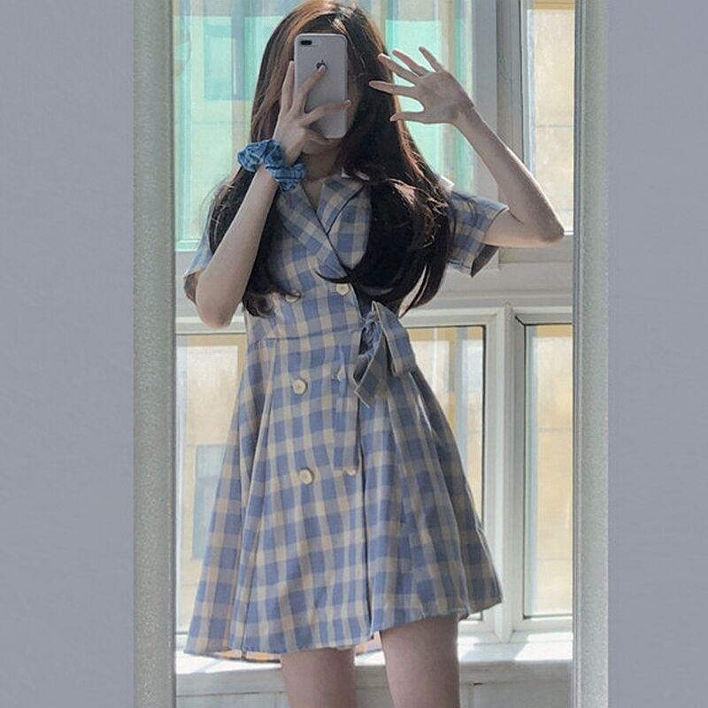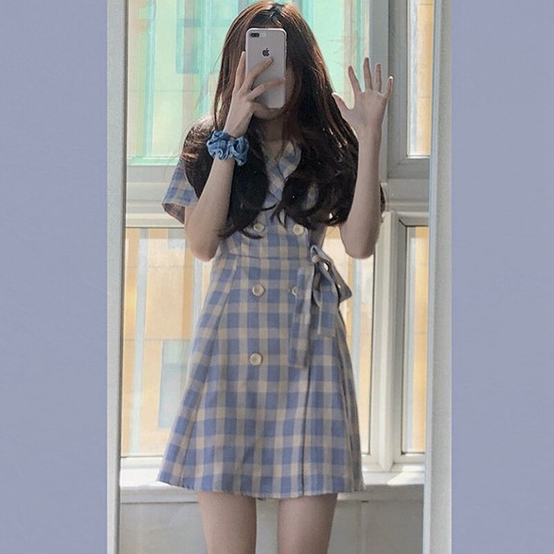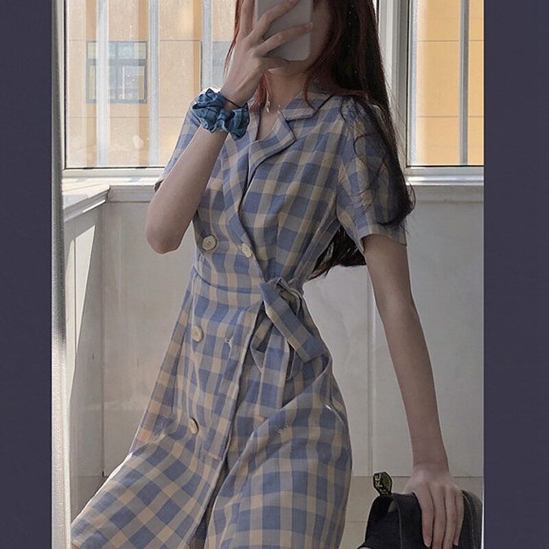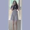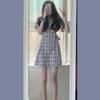 2025 Nuevo Vestido de Traje a Cuadros Dulce y Salado Platycodon Retro Francés Adelgazante de Cintura para Mujer Verano