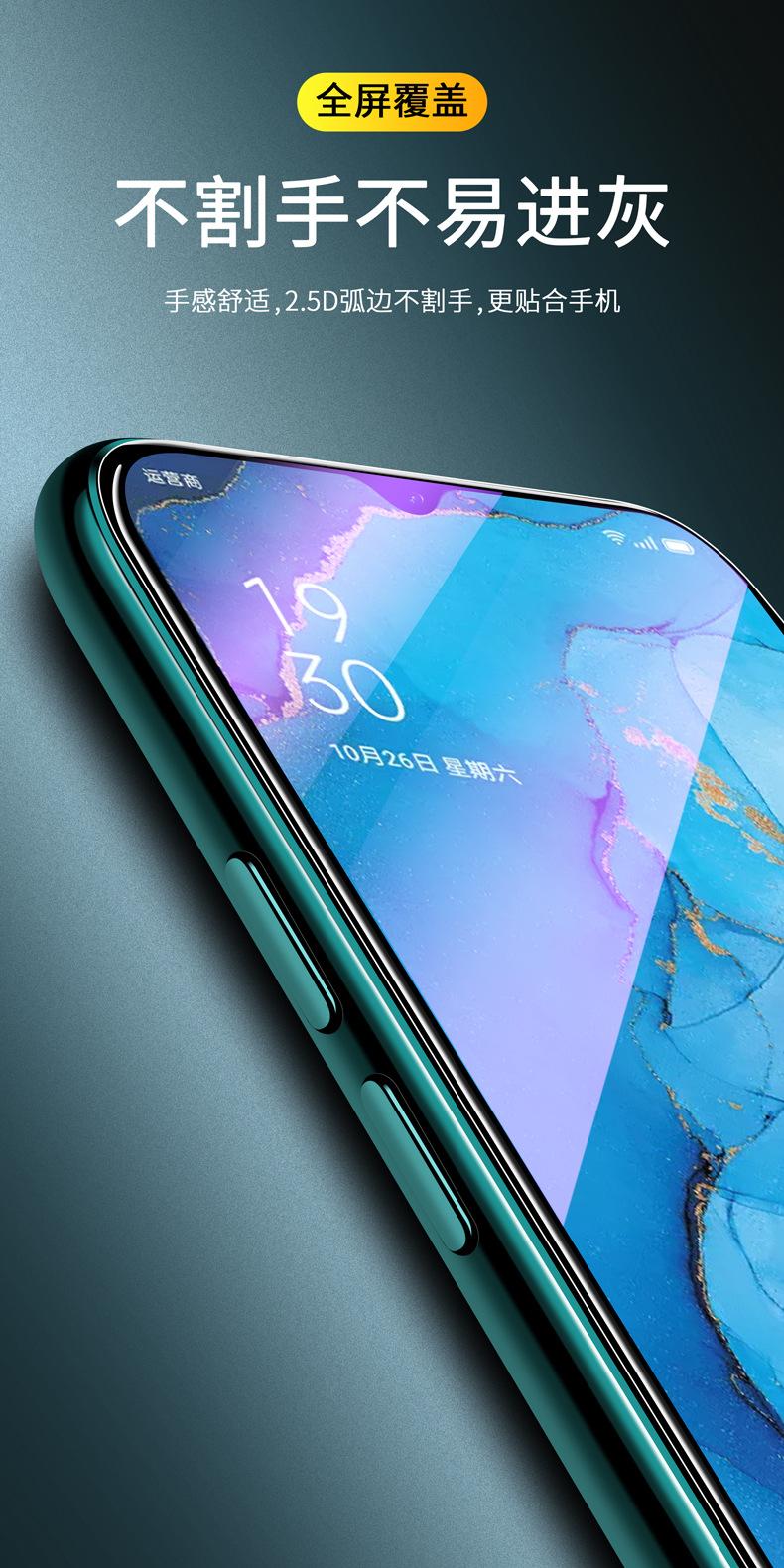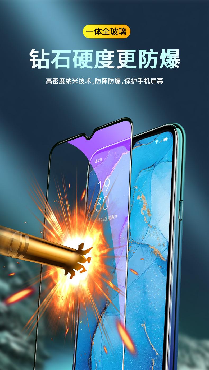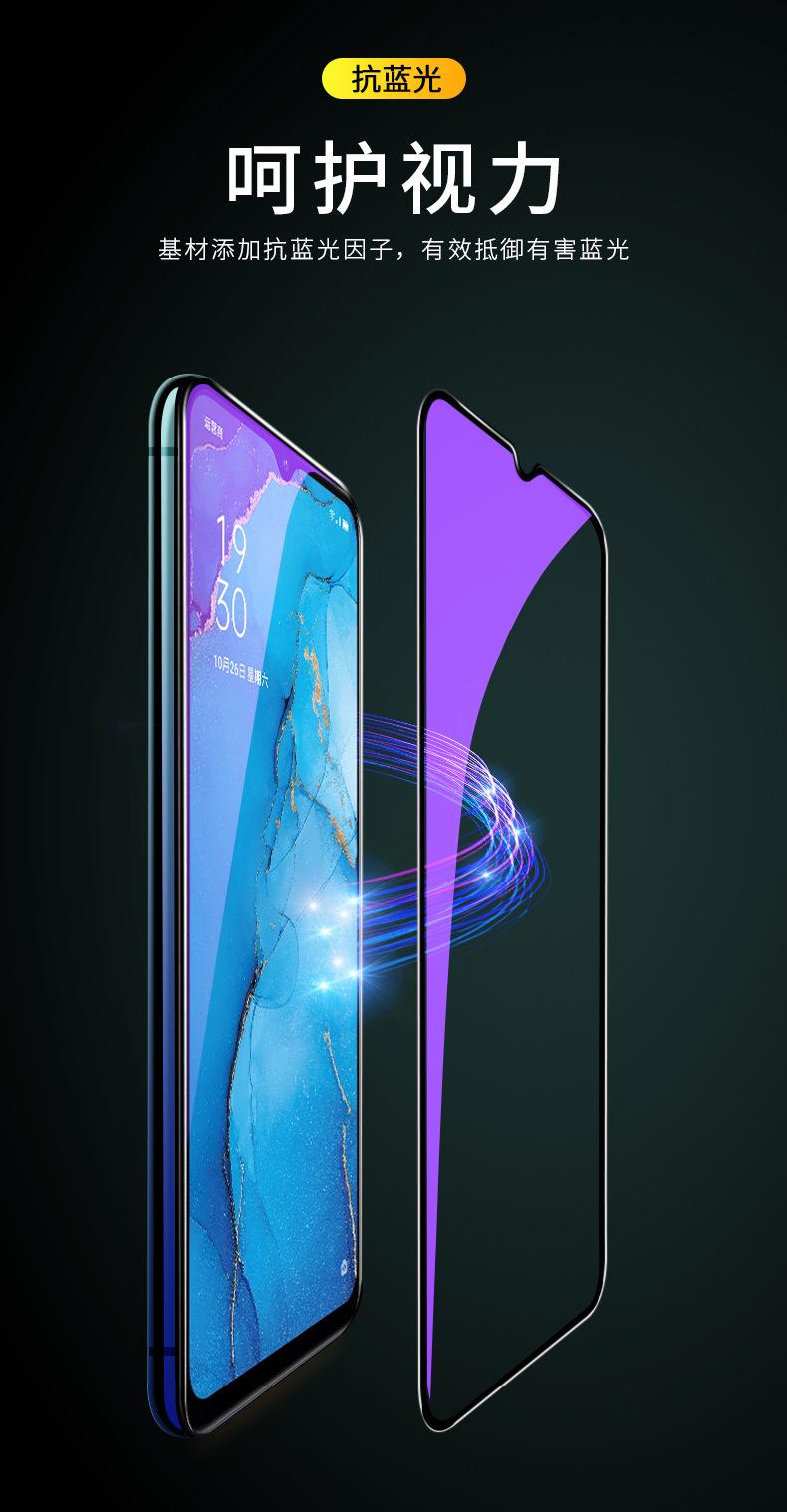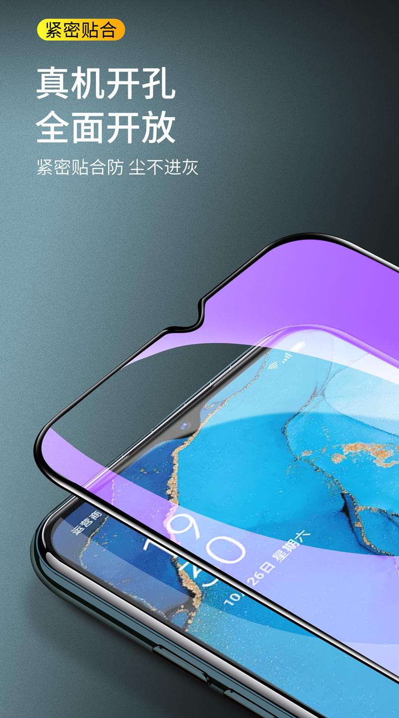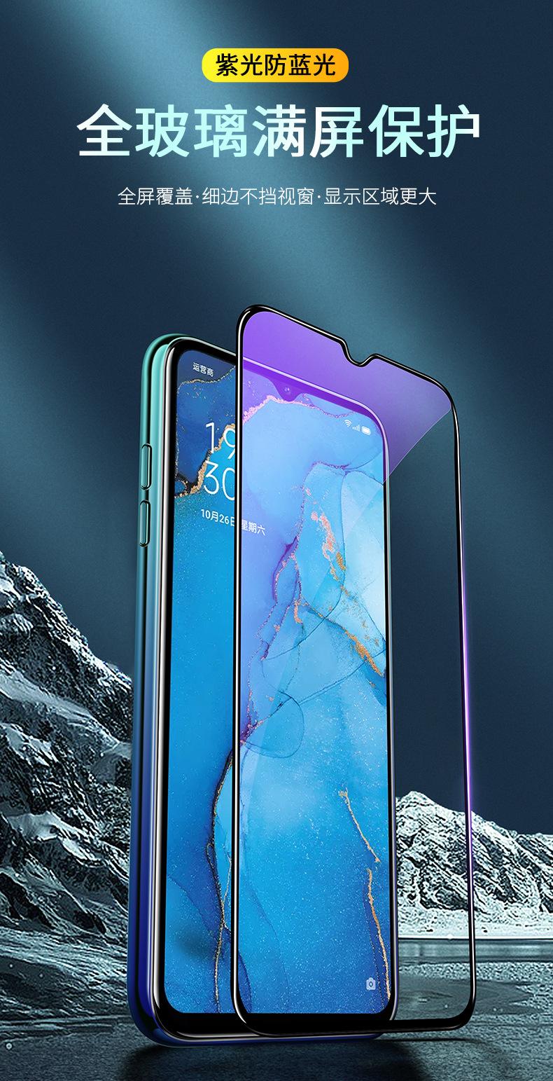 Adecuado para pantalla completa morado oppo A58 A97 A52 película templada A93 película para teléfono móvil findX8 luz anti-azul A95