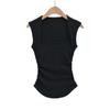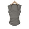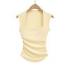 Estilo Europeo y Americano Ajustado Plisado Cuello Cuadrado Hombro Sin Mangas Chaleco para Mujer Verano 2024 Spice Girl Ropa Exterior Top Interior Slim