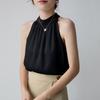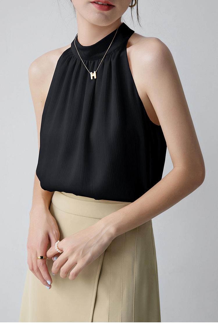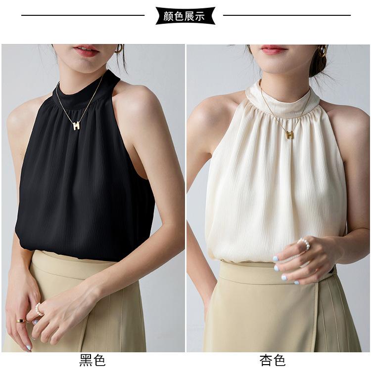 Chaleco sin mangas para mujer con cuello colgante para verano, estilo francés, elegante, ajustado, sexy, suave, corto, con tirantes al hombro.