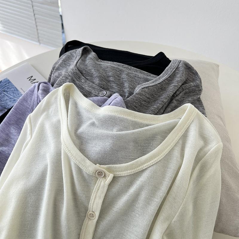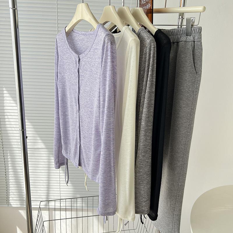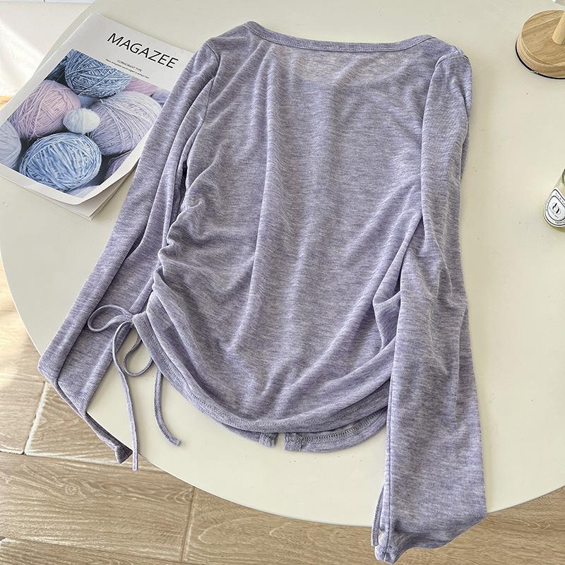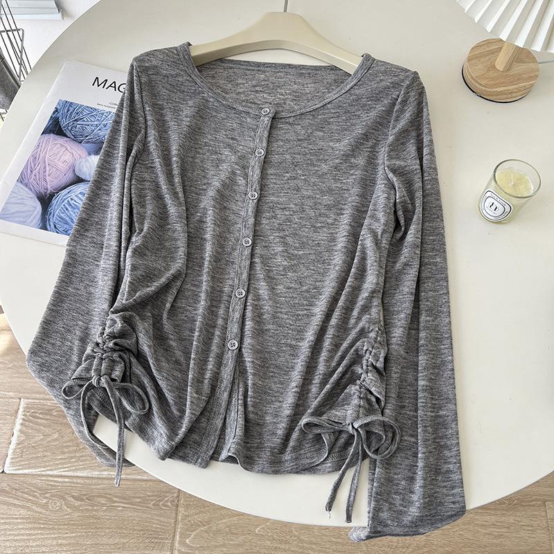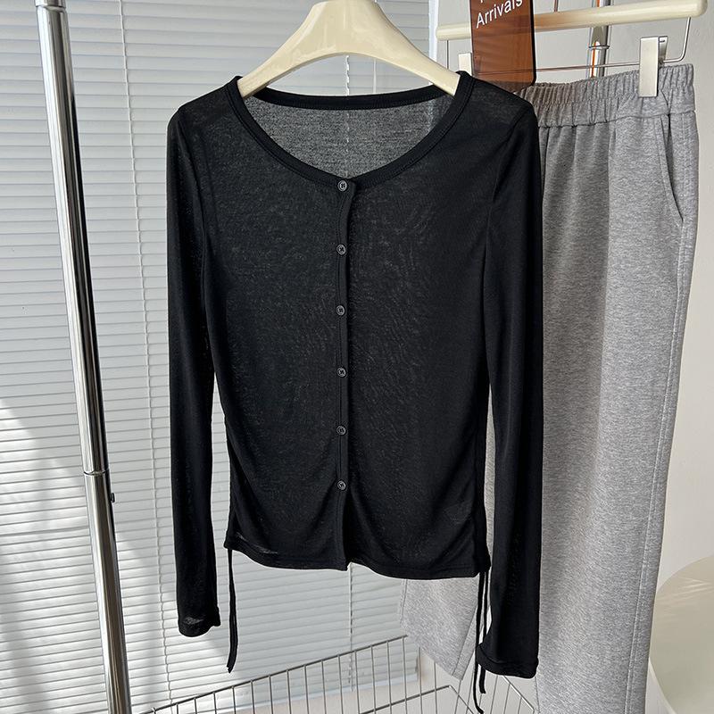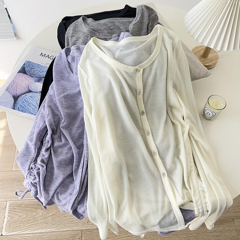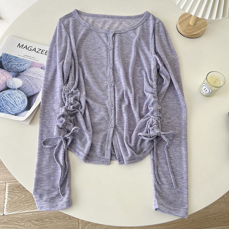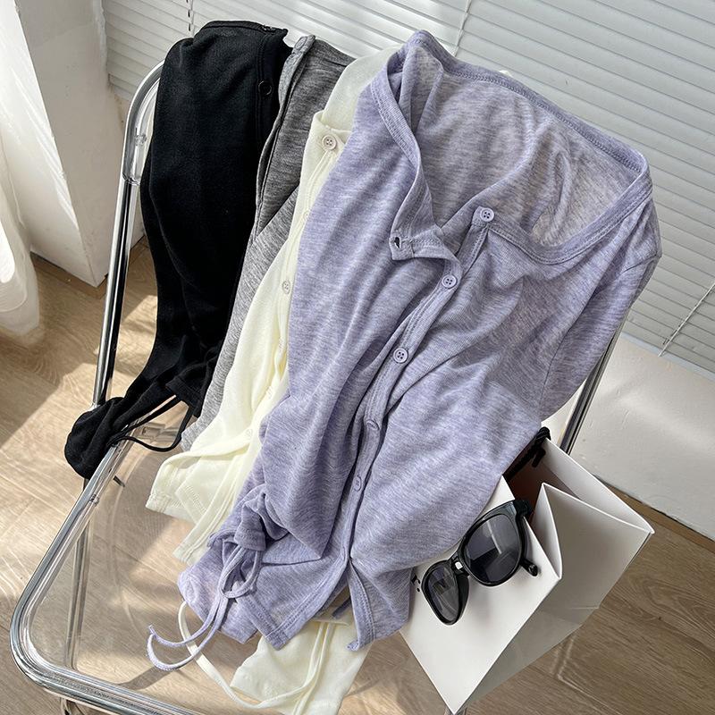 Sentido del Diseño Cárdigan de Punto con Cordón de Doble Lado Protector Solar para Mujer Verano Suelto Adelgazante Camiseta Perspectiva Camisa de Aire Acondicionado Top Delgado