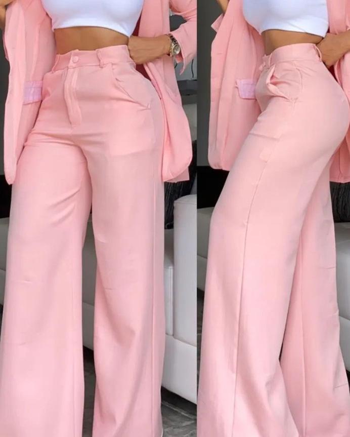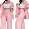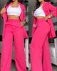 2023 Comercio exterior europeo y americano Traje elegante de mujer de color sólido con solapa y mangas divididas, con bolsillo y pantalón recto