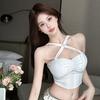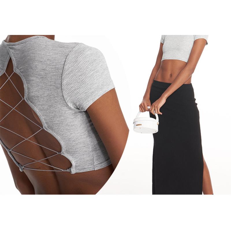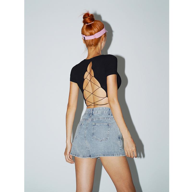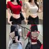 DIANRUO Camiseta de Manga Corta con Tirantes Huecos en la Espalda para Bebé T Sexy sin Espalda Chica Caliente Cinturón Alto Almohadilla en el Pecho Mujer