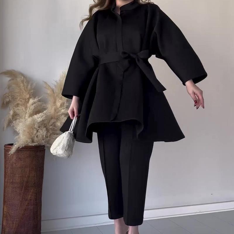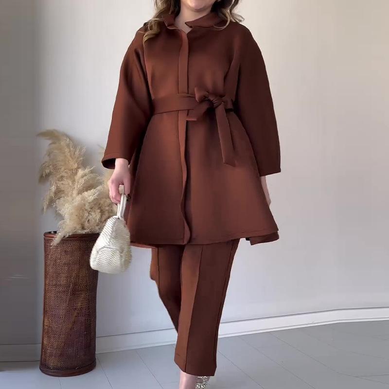 Otoño 2024 nuevo conjunto de dos piezas de temperamento adelgazante de cintura de alta calidad de color sólido popular transfronterizo de Amazon europeo y americano para mujeres