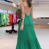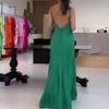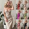 Otoño 2023 nuevo vestido europeo y americano transfronterizo de Amazon transfronterizo de color sólido con cuello en V a la moda sin espalda sexy con tirantes