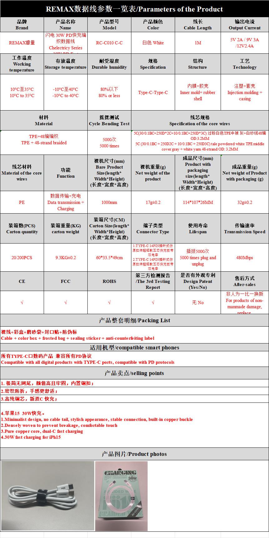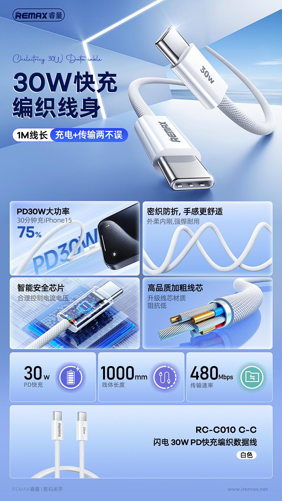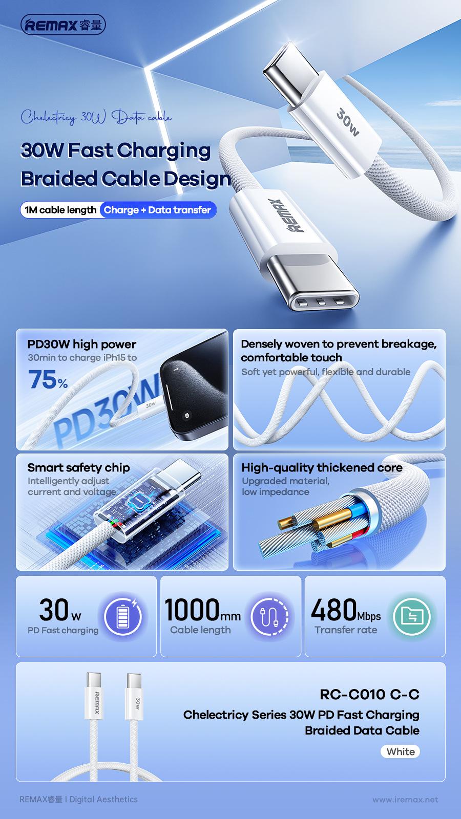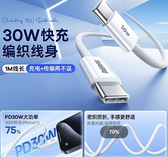 REMAX REMAX carga rápida PD de 30W lightning para Apple 15 cable de datos carga rápida cable de datos C a C