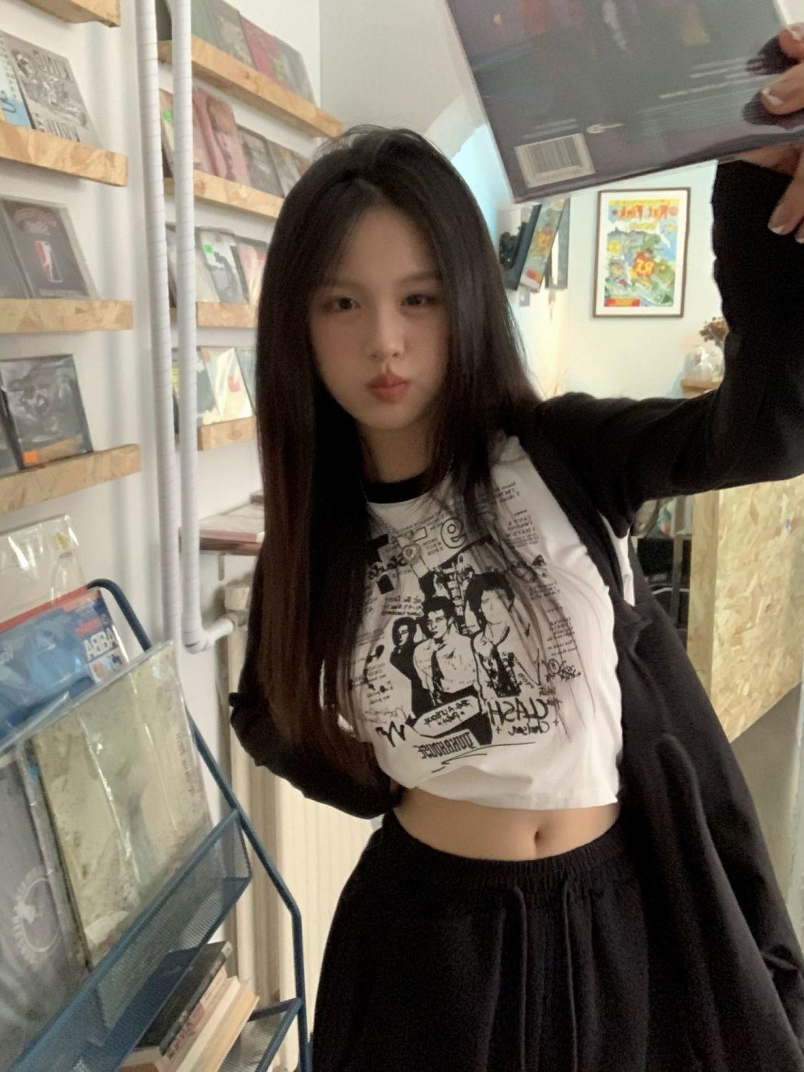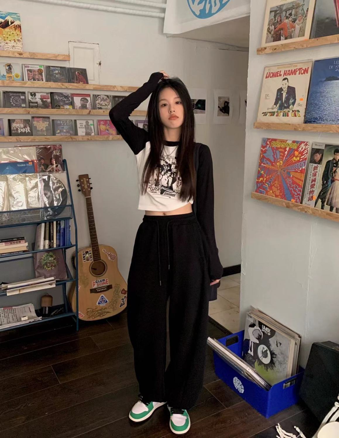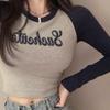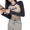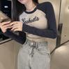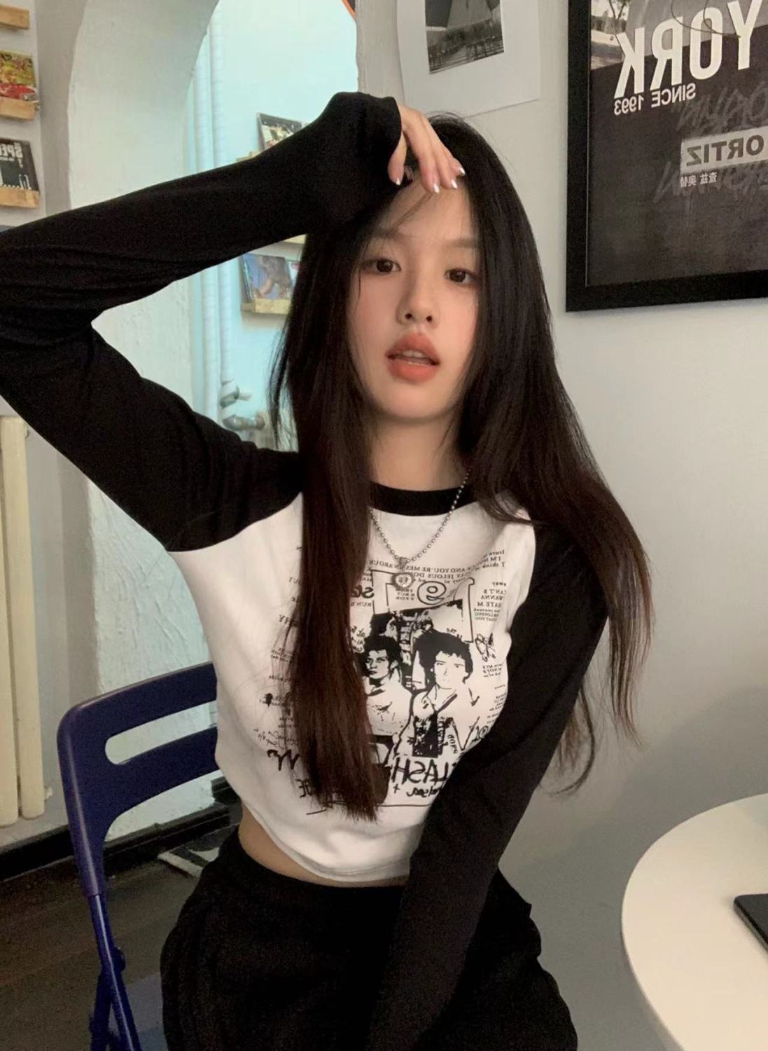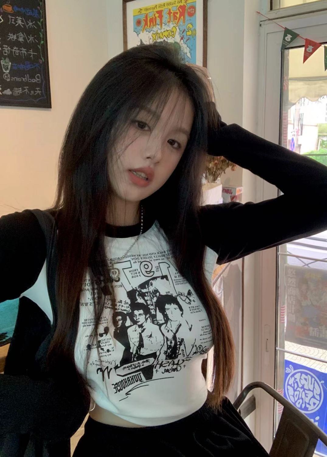 Playera Negra de Manga Larga de las Spice Girls para Mujer Primavera y Otoño Combinación Versátil Interior Ajustado Cintura Alta Corta Ombliguera Camiseta Top Ins Trendy