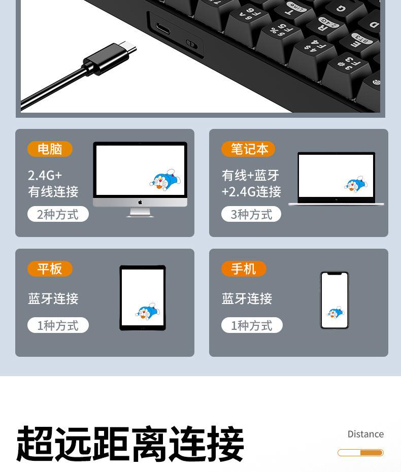 Teclado mecánico inalámbrico Bluetooth de tres modos Xinmeng de 68 teclas RGB Interfaz: Receptor USB inalámbrico/Bluetooth/Conexión directa Color: negro, blanco Luminiscencia: Luz arcoíris/luz blanca/luz azul hielo Embalaje: 20/caja Tamaño de la caja exterior: 49*36*33cm Peso bruto: 17 kg Peso neto: 16 kg Tamaño del teclado: 31*9.9*3.8cm Tamaño de la caja: 34.7*15*4.8cm Peso del teclado: 598g Peso con caja: 792g Observaciones: Tres modos de cableado e inalámbrico Bluetooth, eje negro y verde, luz arcoíris, eje negro y verde, luz blanca, eje blanco y verde, luz azul hielo