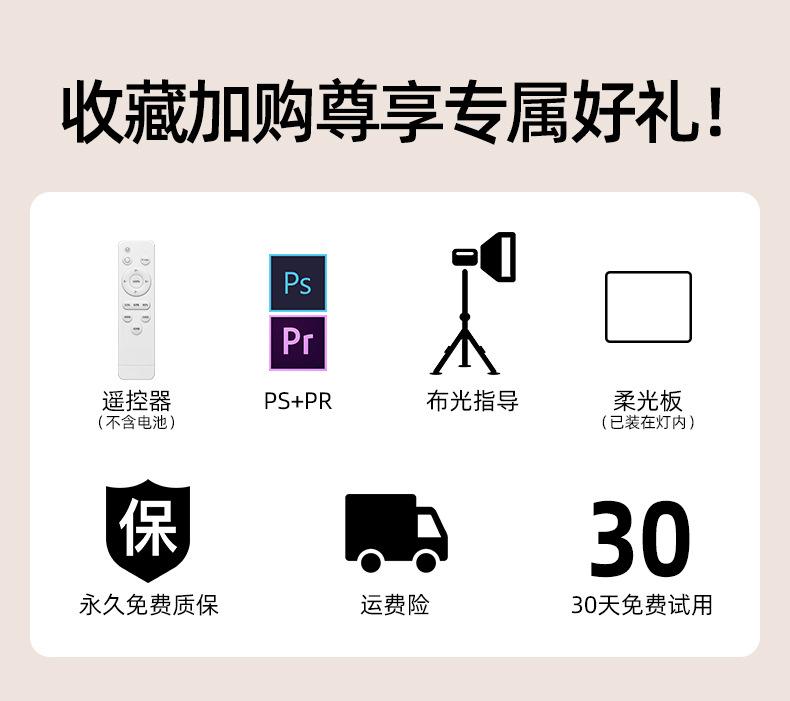 33 * 33cm two-color RGB color light + desktop universal clip