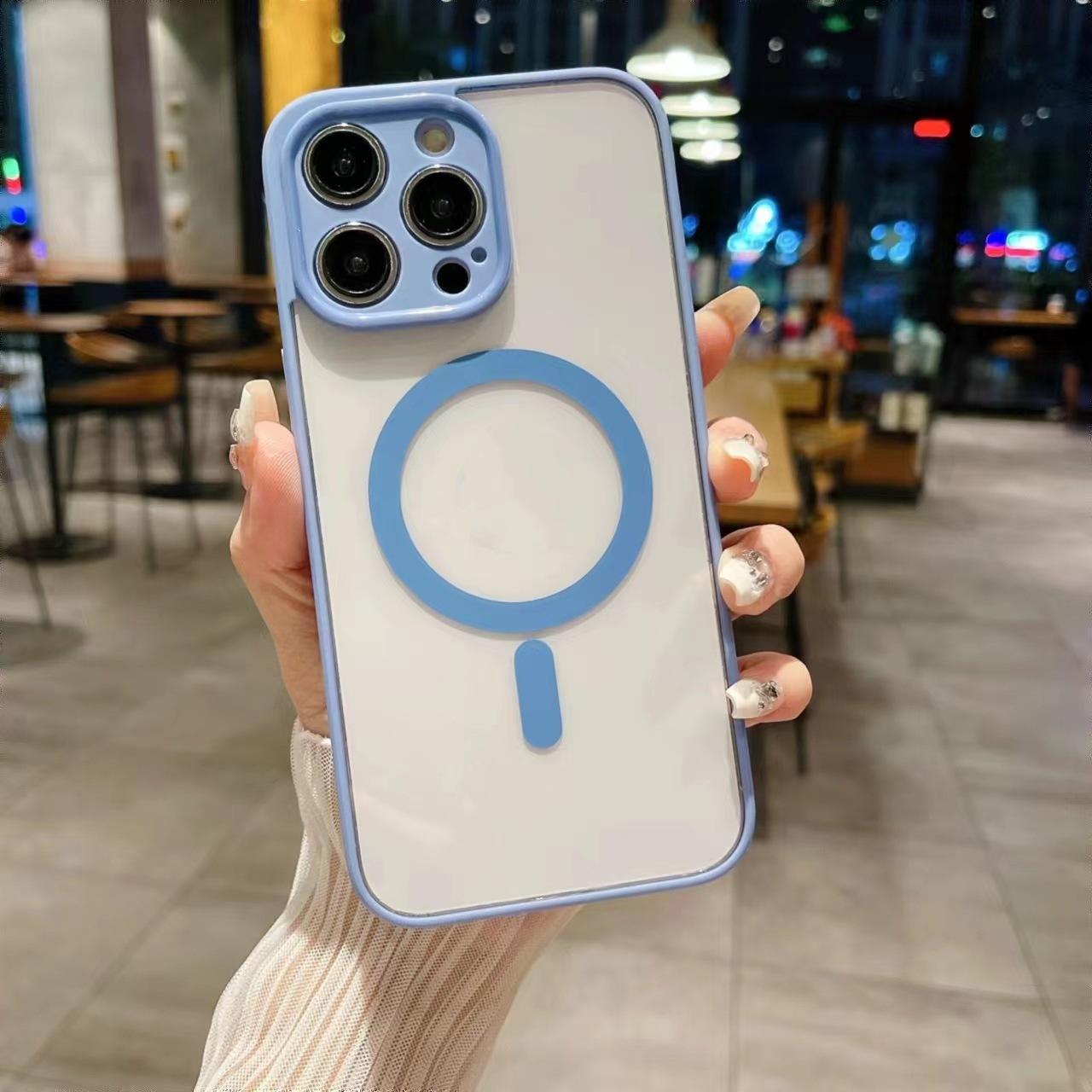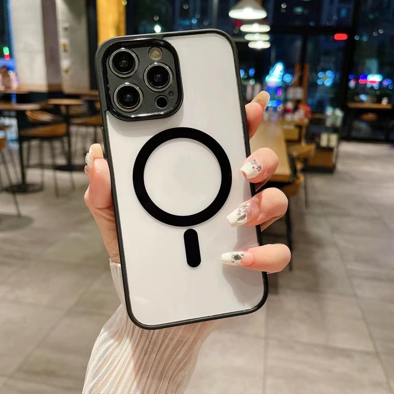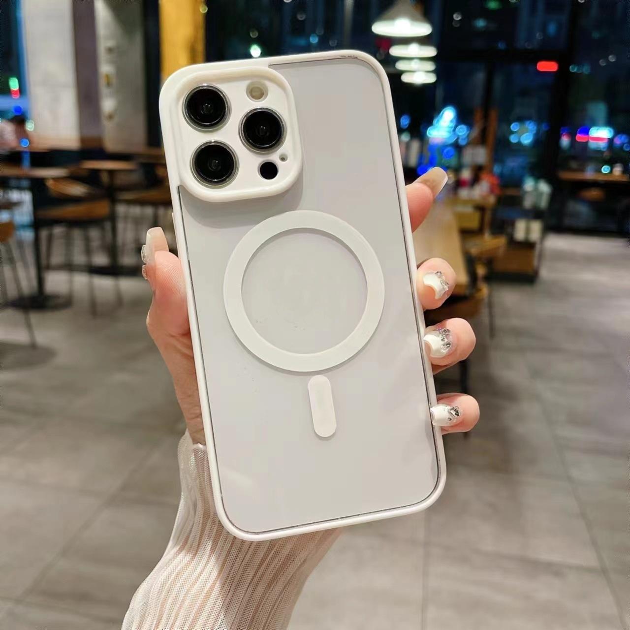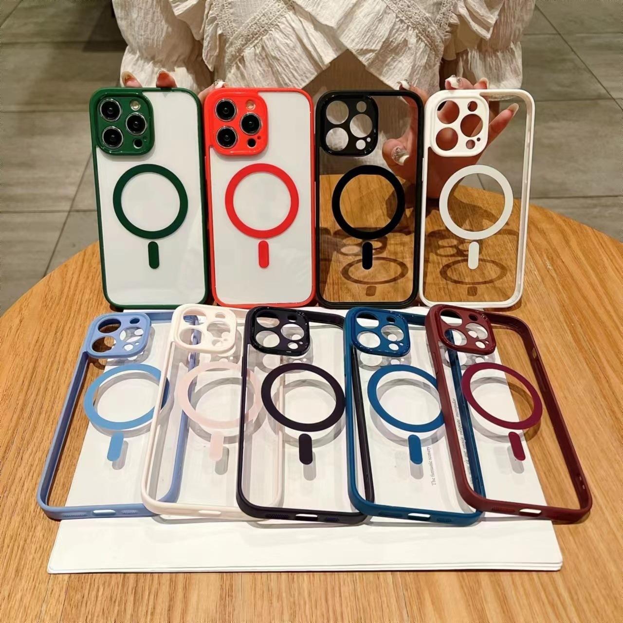 Carcasa de teléfono móvil compatible con iPhone 15, color acrílico con orificio fino, carga magnética de 14 Pro, succión 12/13, cubierta protectora resistente a caídas.