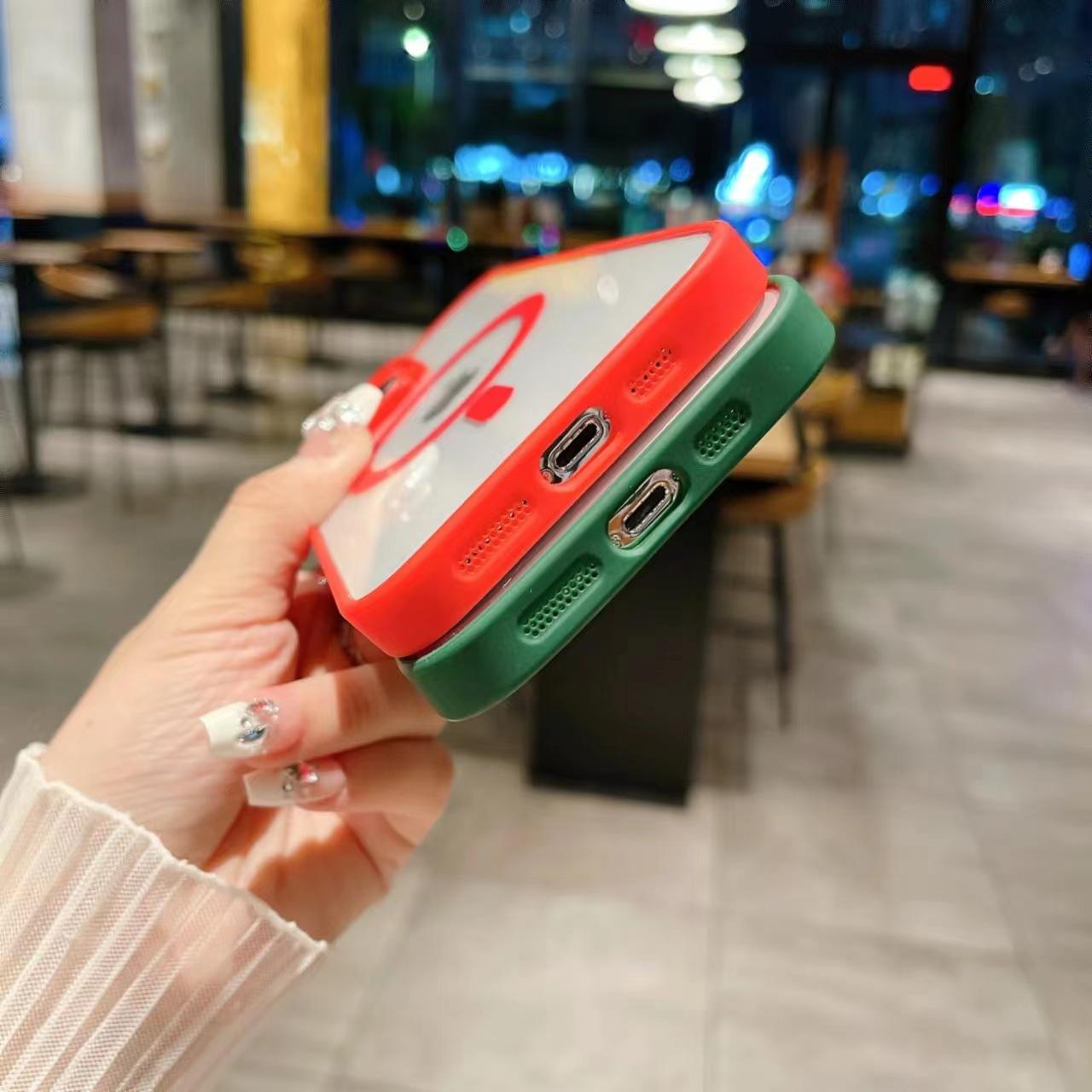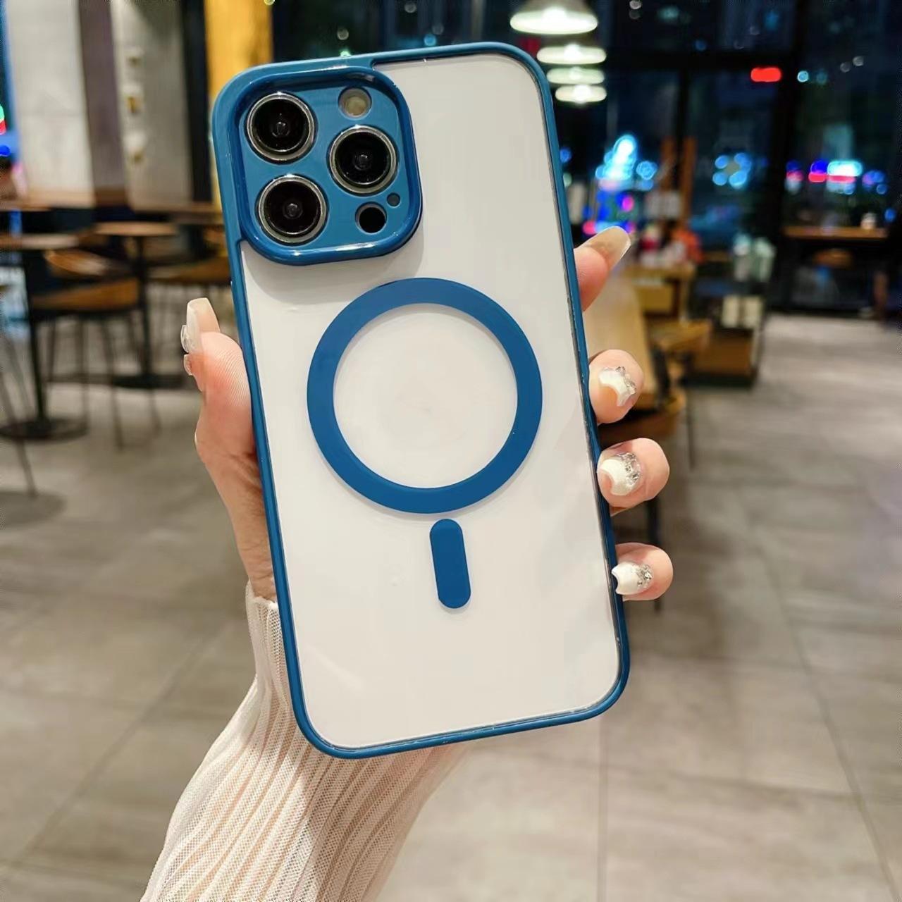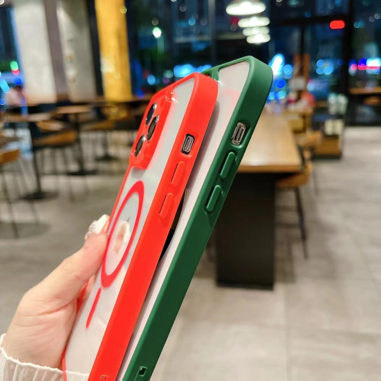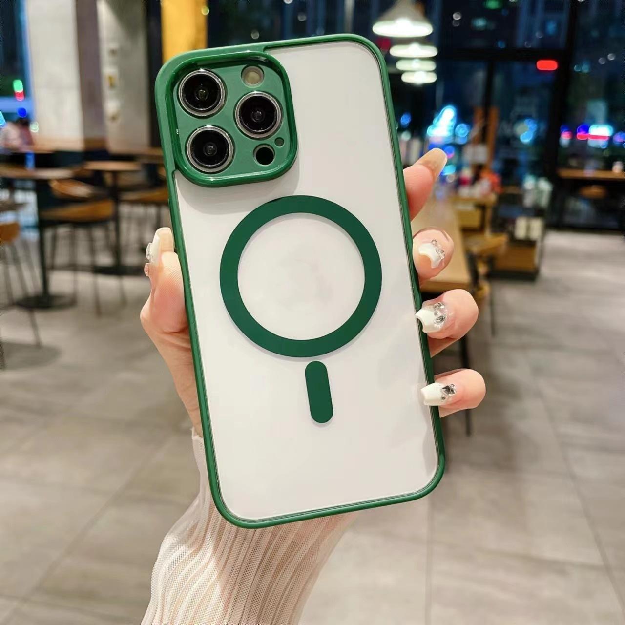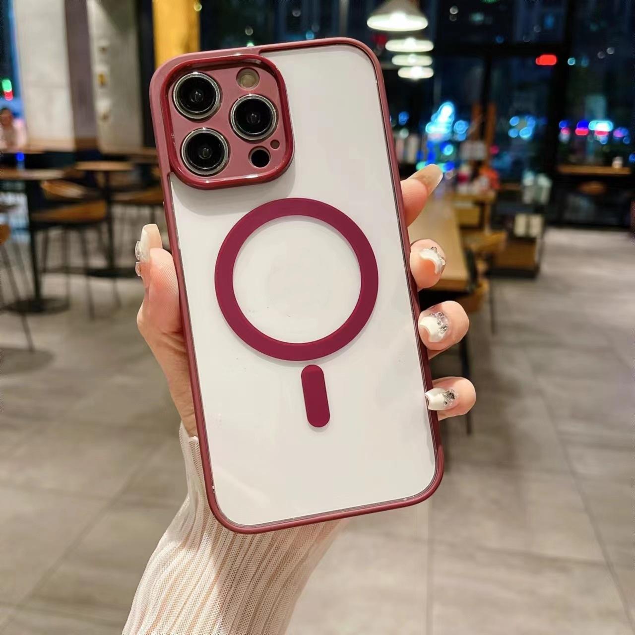 Carcasa de teléfono móvil compatible con iPhone 15, color acrílico con orificio fino, carga magnética de 14 Pro, succión 12/13, cubierta protectora resistente a caídas.