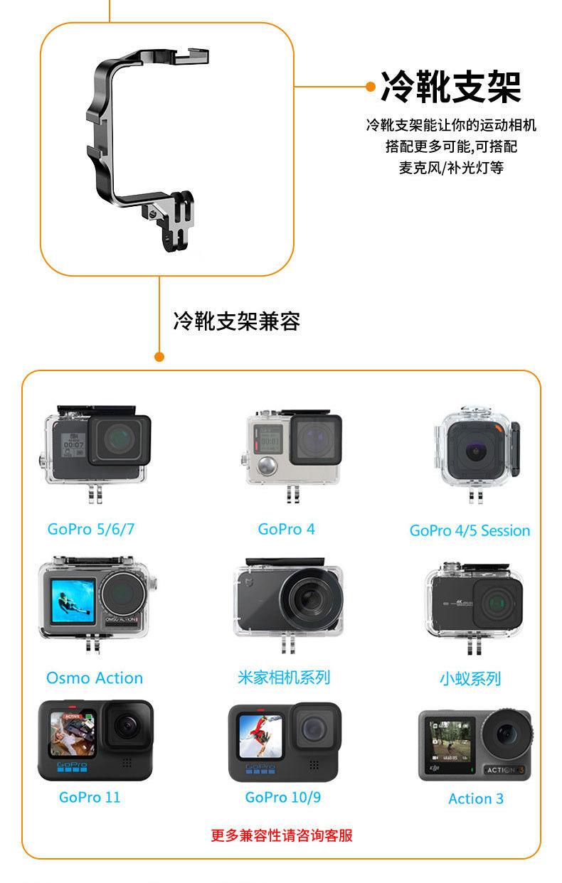 Soporte de arranque en frío para cámara deportiva GoPro, marco de fijación para luz de buceo, mini soporte para luz de relleno para fotografía de cámara deportiva