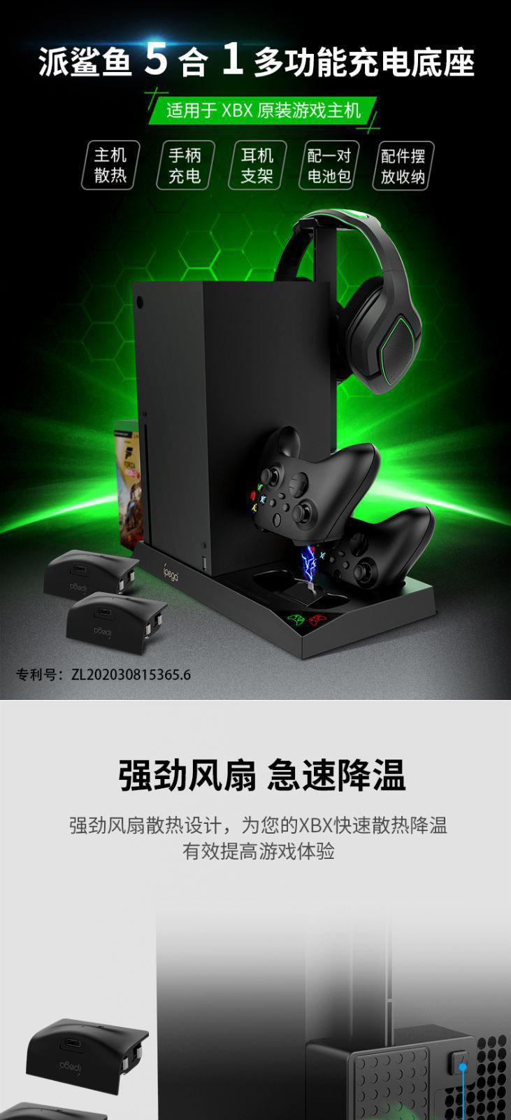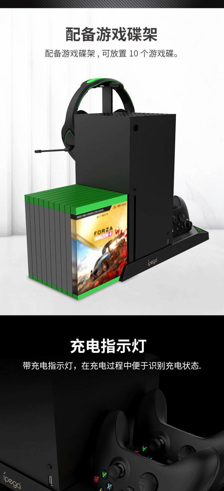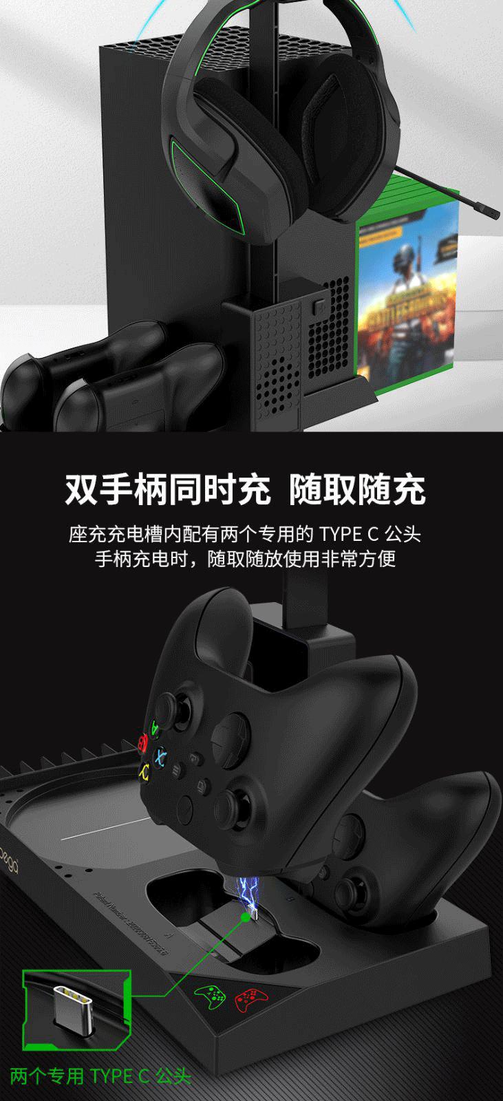 Base de consola Xbox Series X, radiador, asa de batería dual XSX, soporte de almacenamiento de discos para auriculares de carga