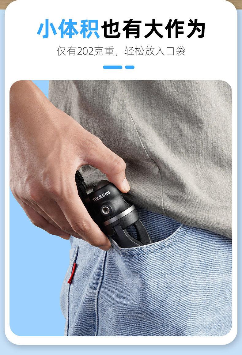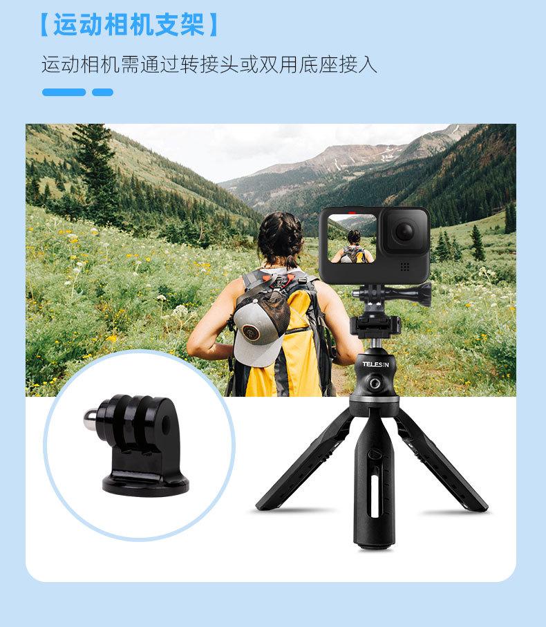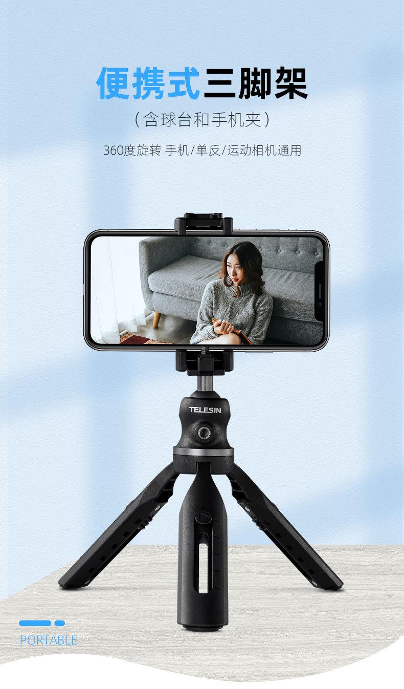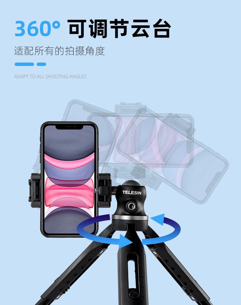 Cámara deportiva para teléfono móvil TELESIN adecuada para GoPro, trípode portátil, palo selfie, fotografía en vivo de 360 grados
