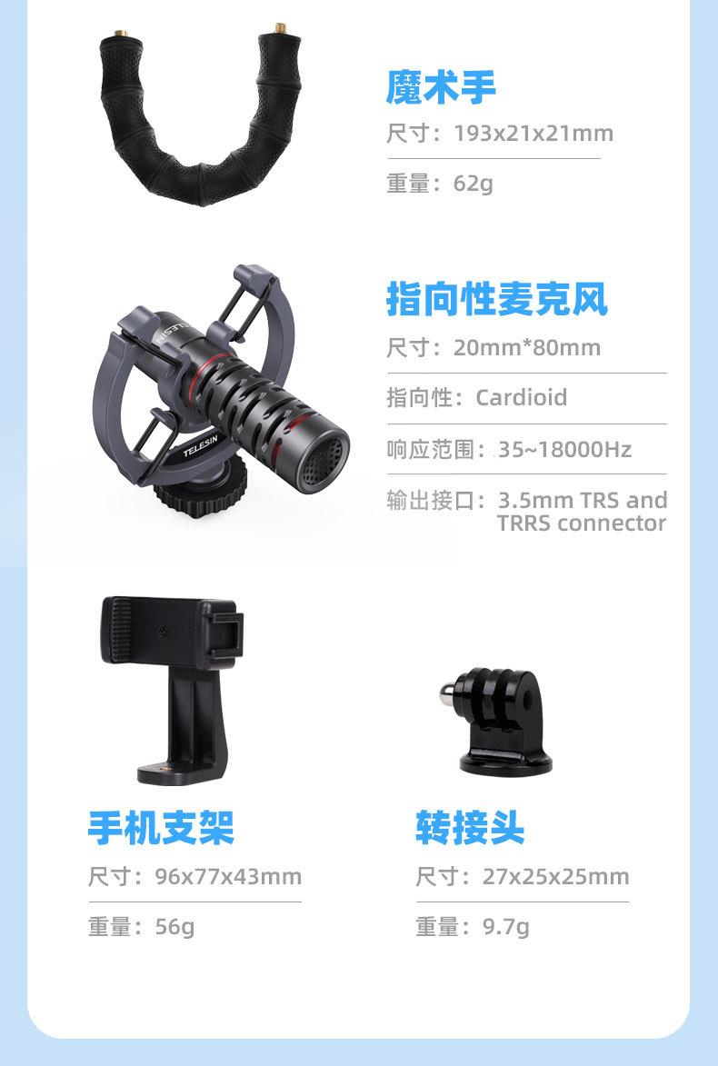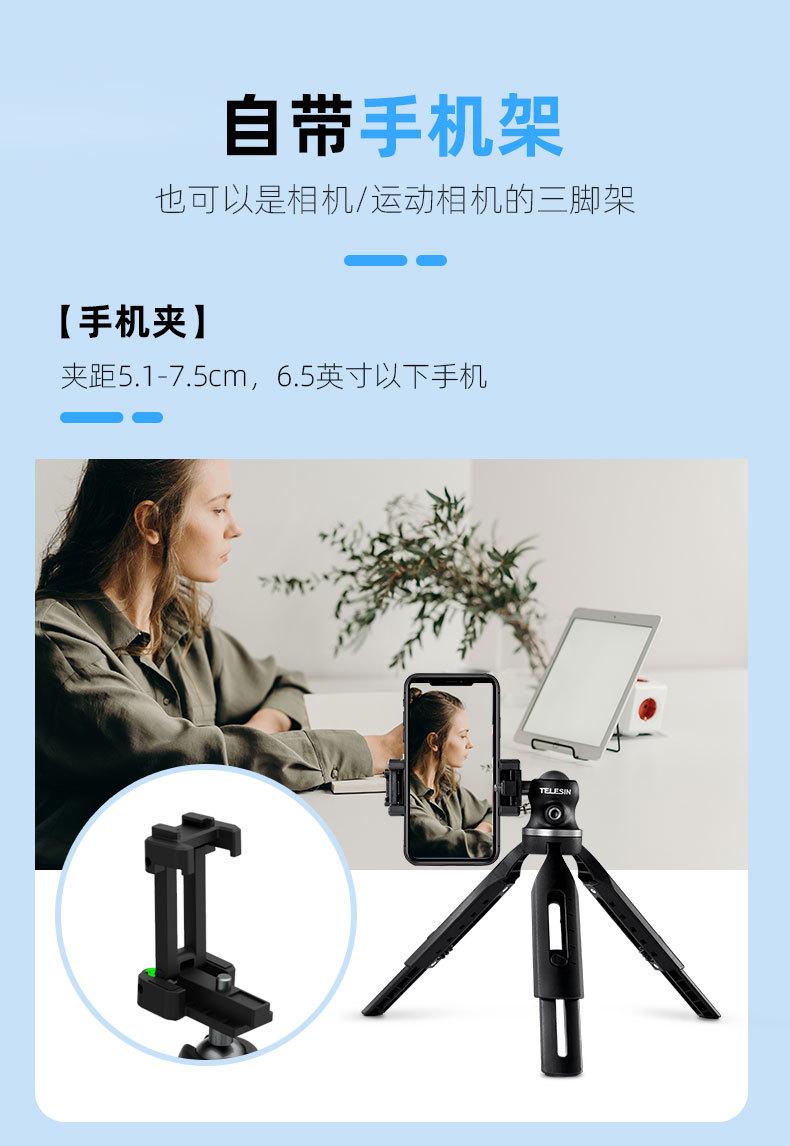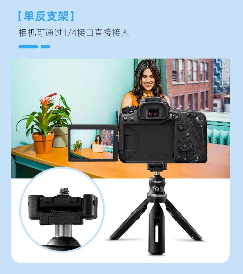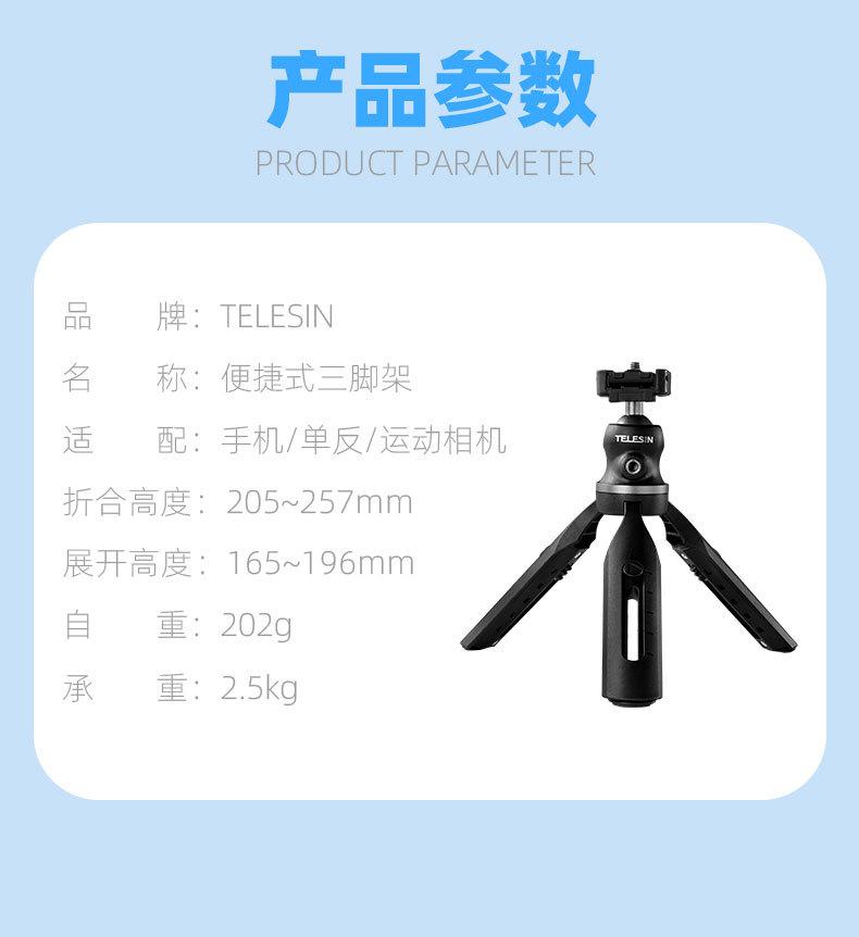 Cámara deportiva para teléfono móvil TELESIN adecuada para GoPro, trípode portátil, palo selfie, fotografía en vivo de 360 grados