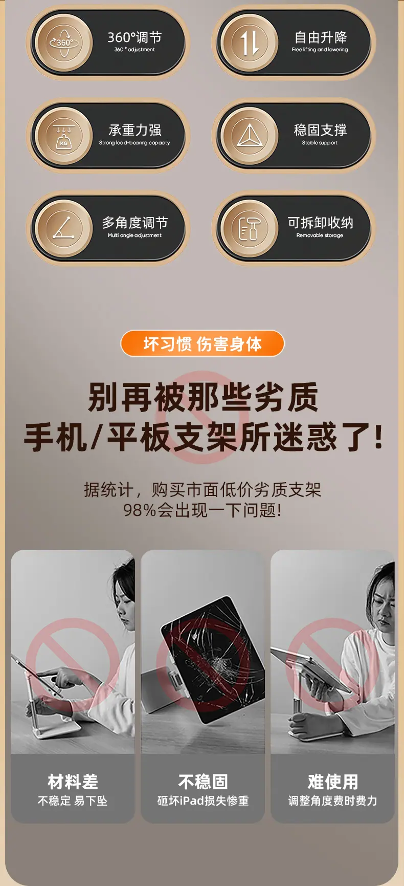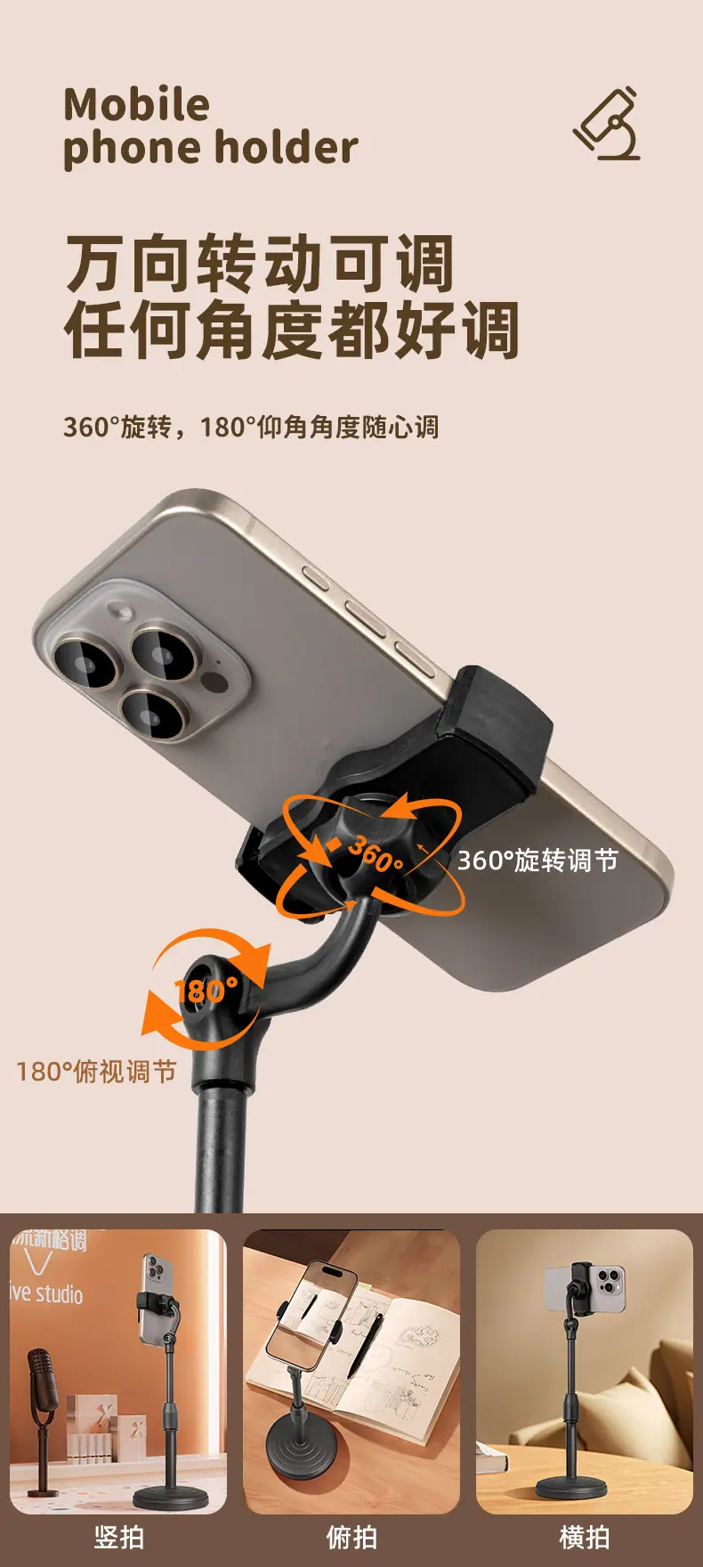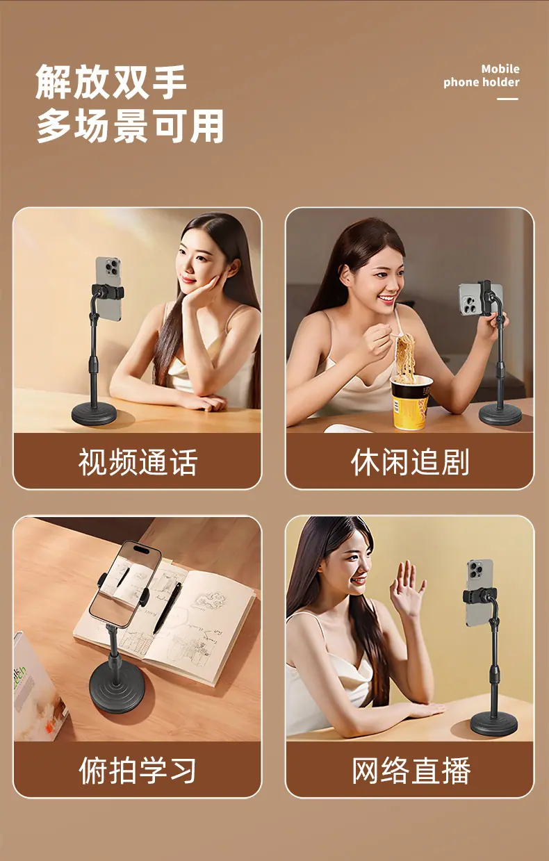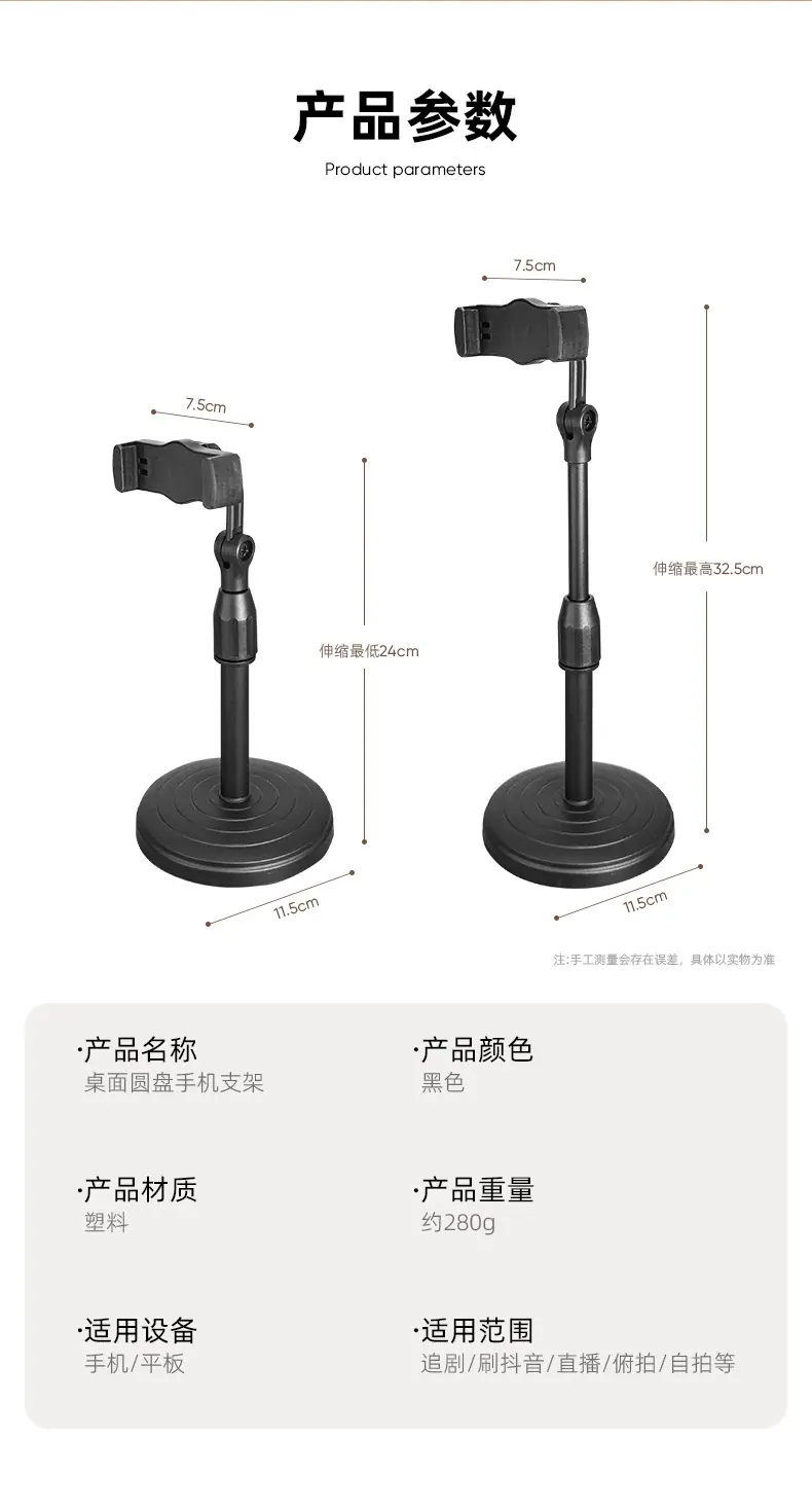 Soporte para teléfono móvil de disco multifuncional, para levantar y disparar, de escritorio, portátil, telescópico, giratorio, perezoso, en vivo