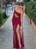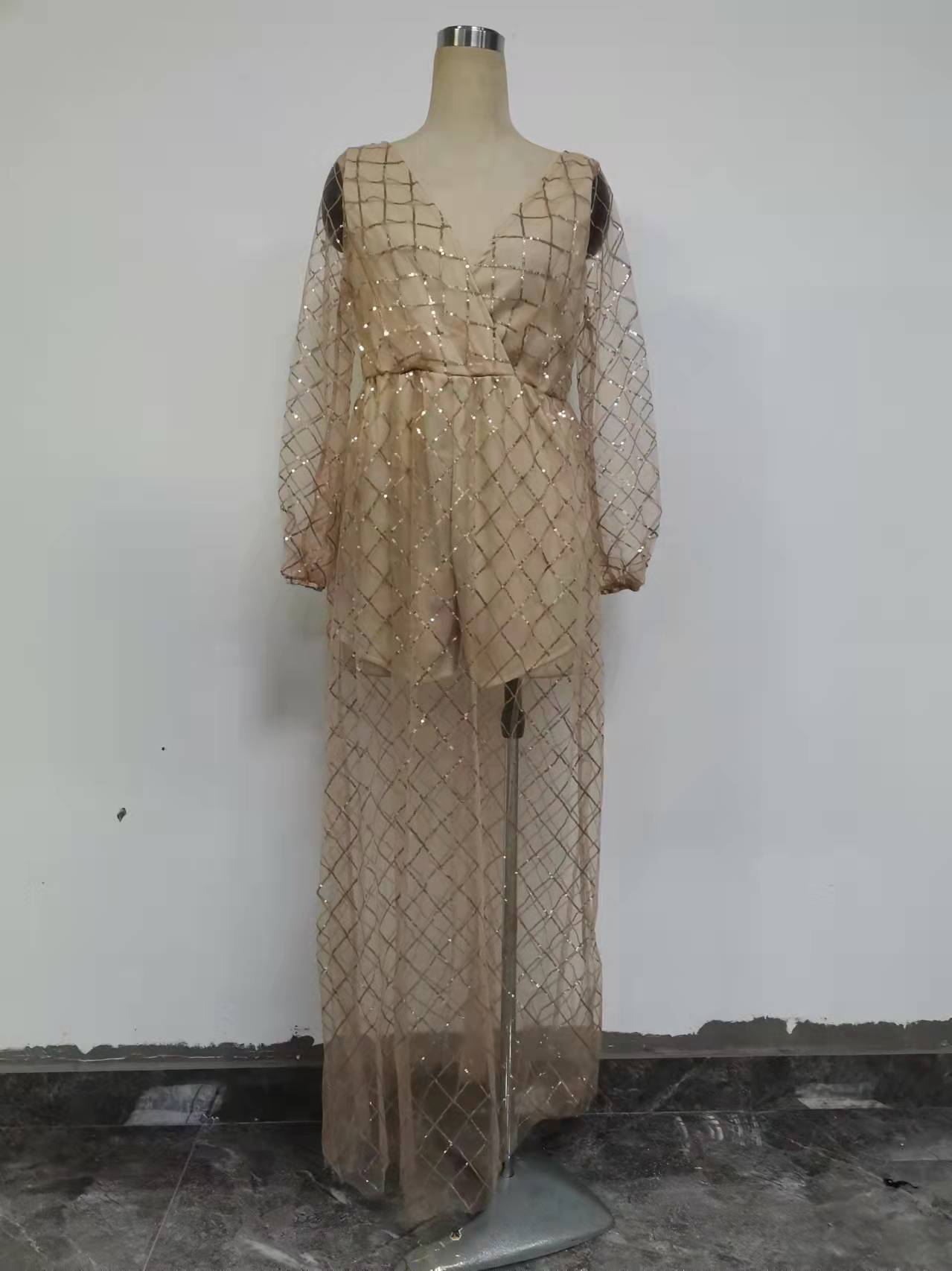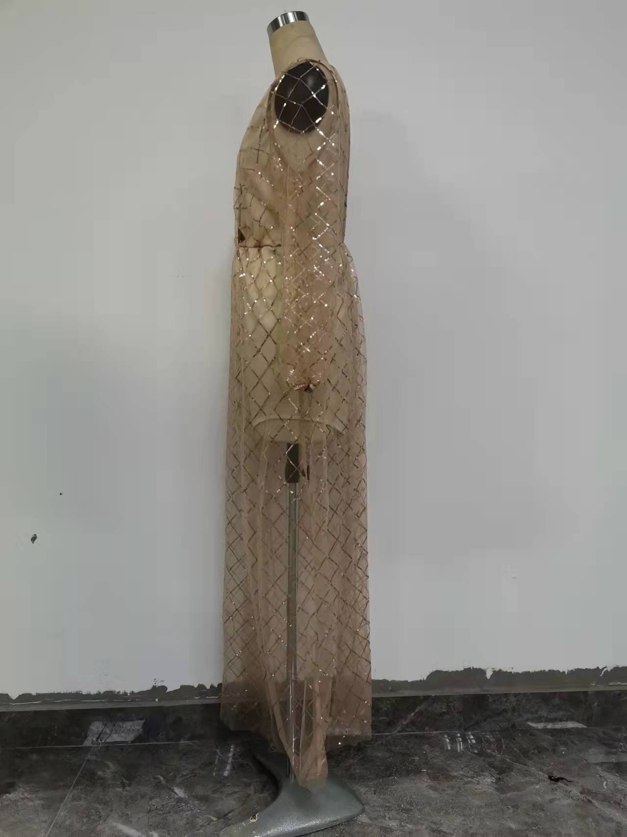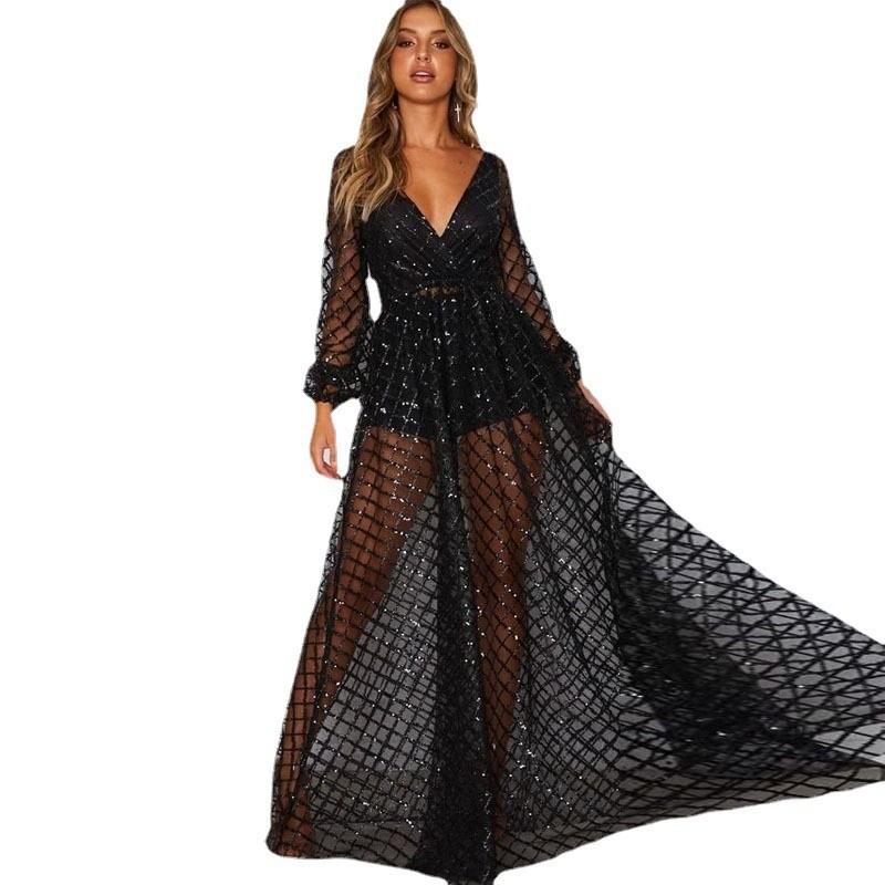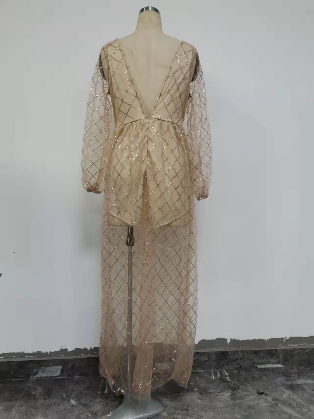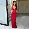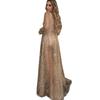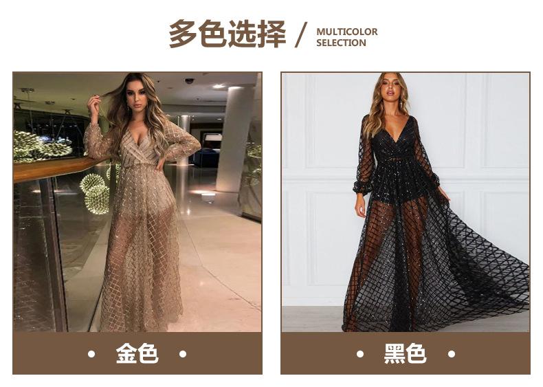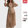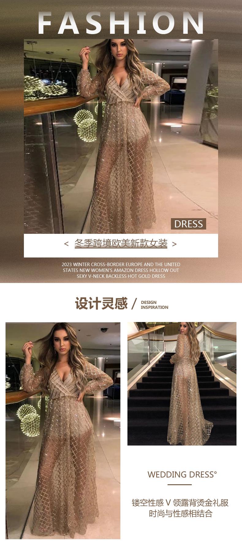 2025 Ropa Nueva Europea y Americana Transfronteriza Vestido Amazon Recorte Sexy Cuello V Espalda Descubierta Vestido Bronceado