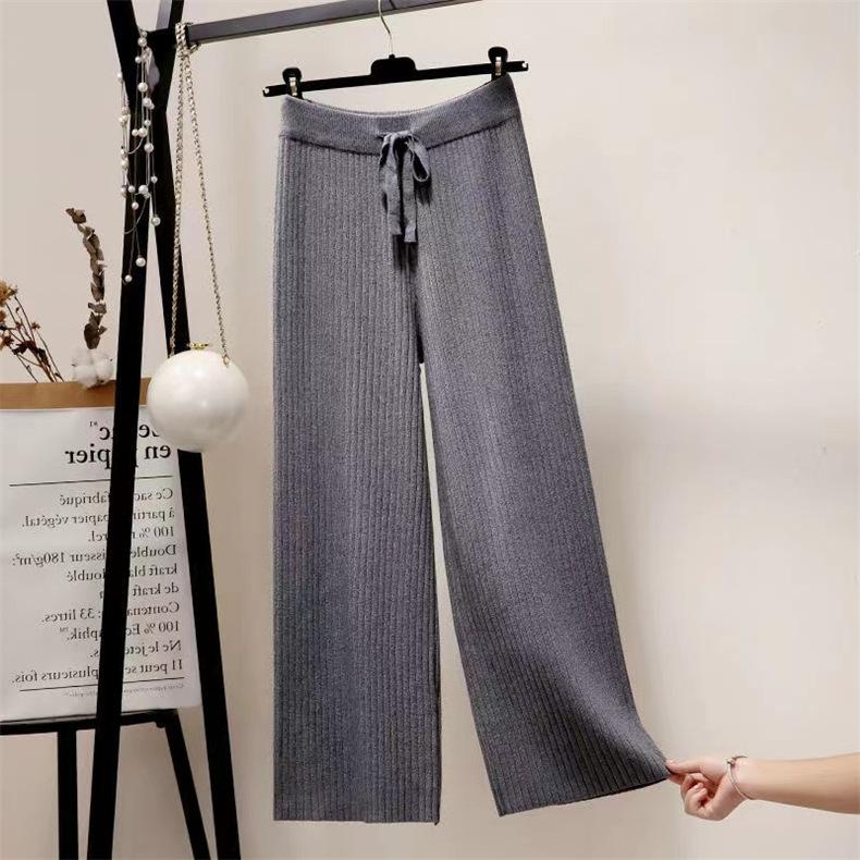 Pantalones de Punto para Mujer Otoño e Invierno 2025 Nuevos Pantalones Slim de Pierna Ancha para Mujer de Cintura Alta Casual Versátil Pantalones de Suéter Drapeados