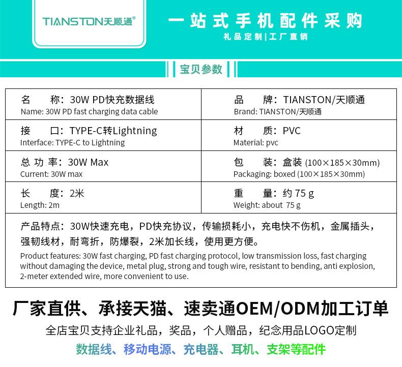 S18 apple pd fast charging cable 30w suitable for apple 8-14 [ 2m bag]