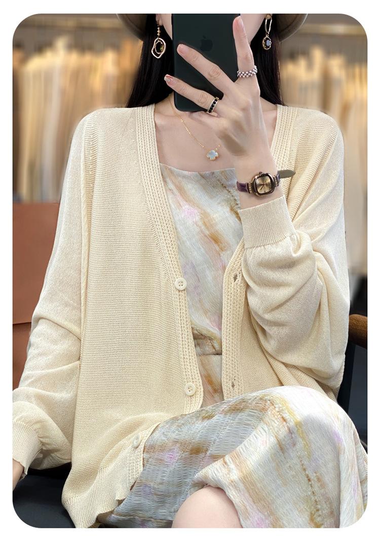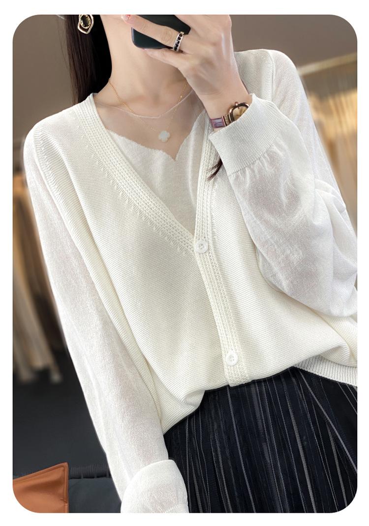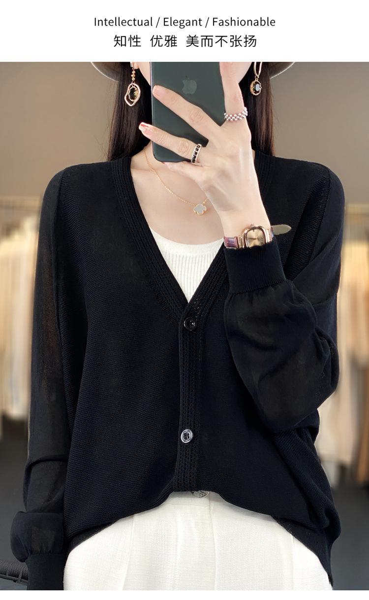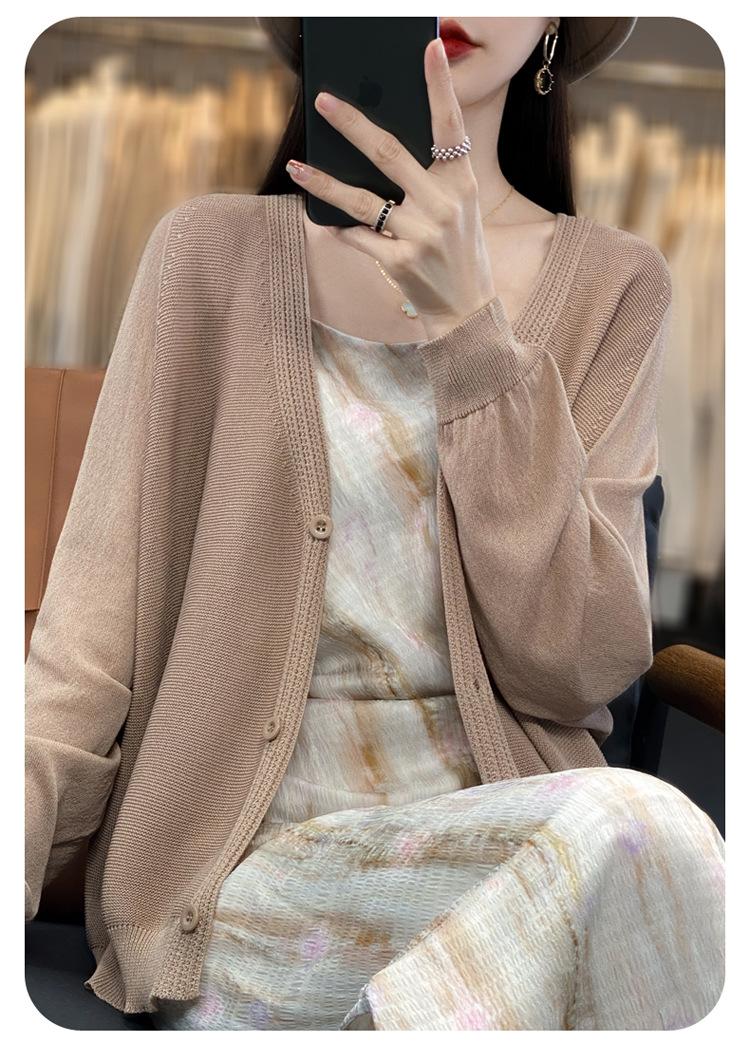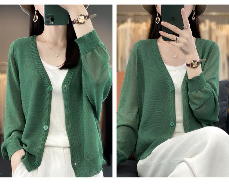 Cárdigan fino de punto con protector solar para mujer, novedad de verano 2023, ropa exterior de manga larga, abrigo holgado, camisa elegante adelgazante con aire acondicionado