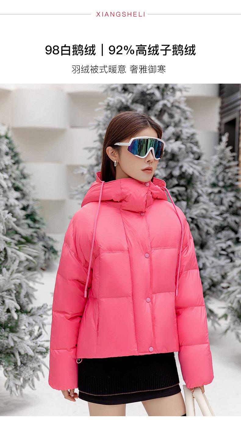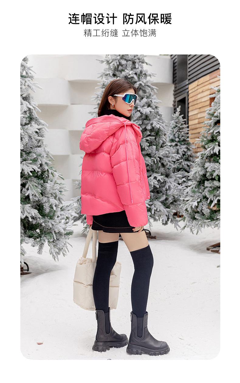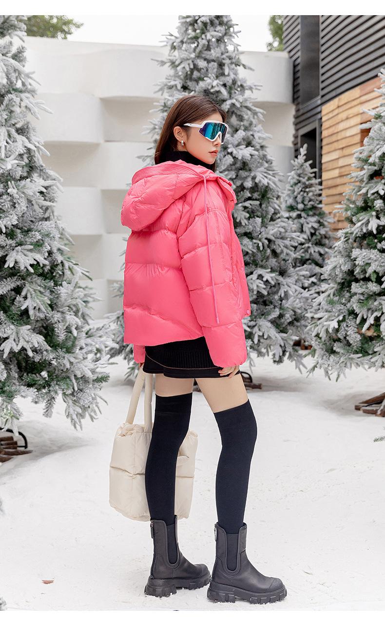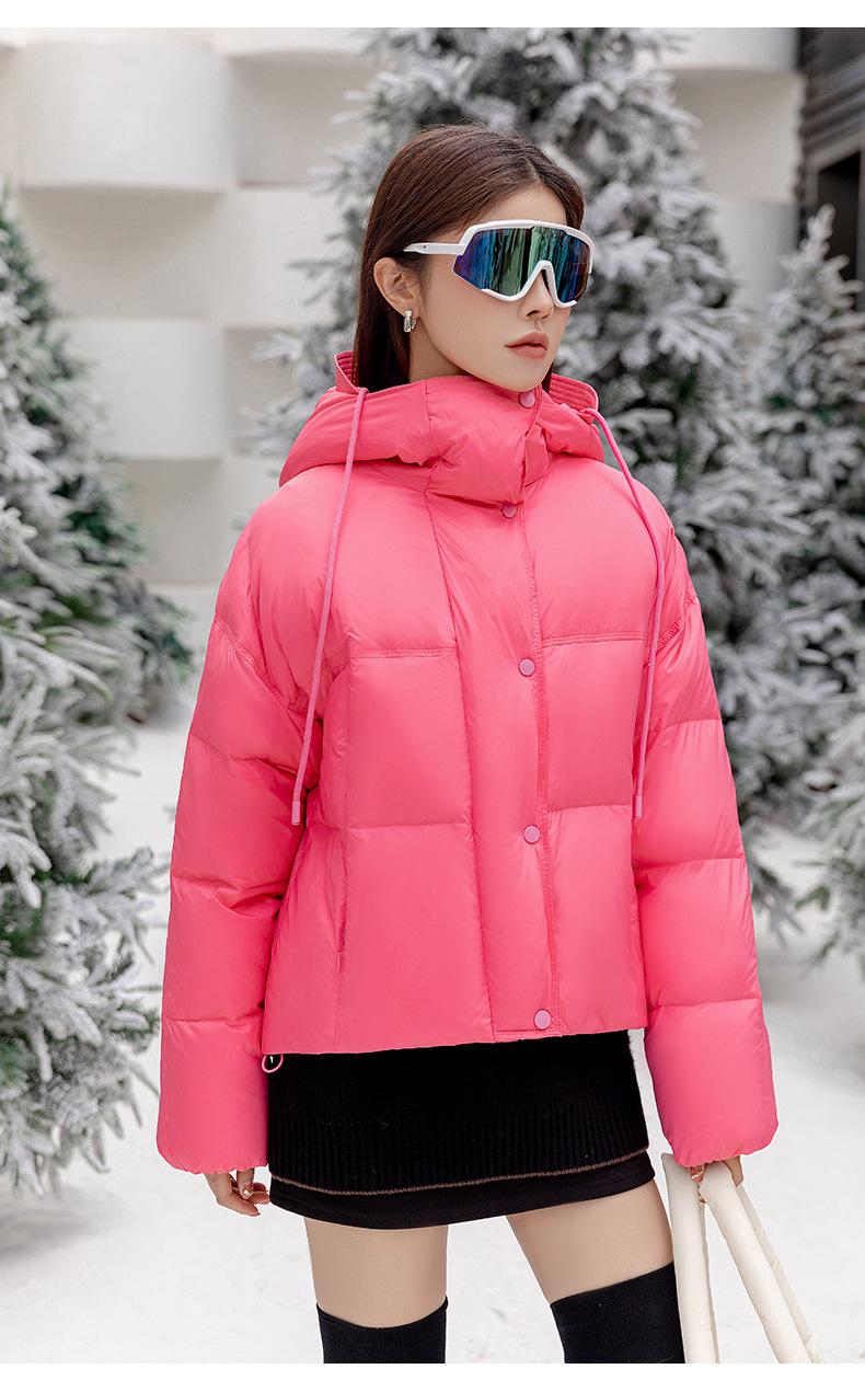 Dopamina 95 Plumón de Ganso Blanco Chaqueta de Plumón a la Moda con Capucha Estéreo Suave y Amigable con la Piel 23 Invierno Cálida Chaqueta de Plumón de Ganso para Mujer