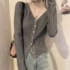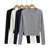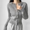 Cárdigan de punto de manga larga con giro retro de estilo europeo y americano para mujer, otoño 2023, nuevo abrigo de suéter adelgazante para chica sexy