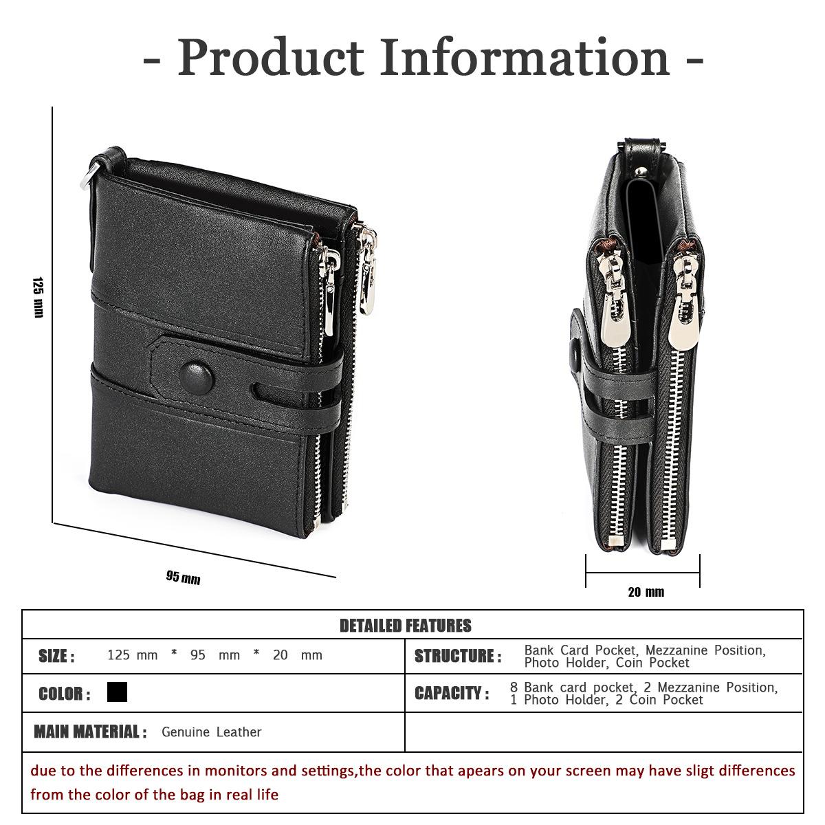 | Cartera de piel de vaca Crazy Horse para hombre, billetera corta de cuero genuino antirrobo RFID, billetera para hombre con doble cremallera, estilo popular de comercio exterior¥38