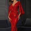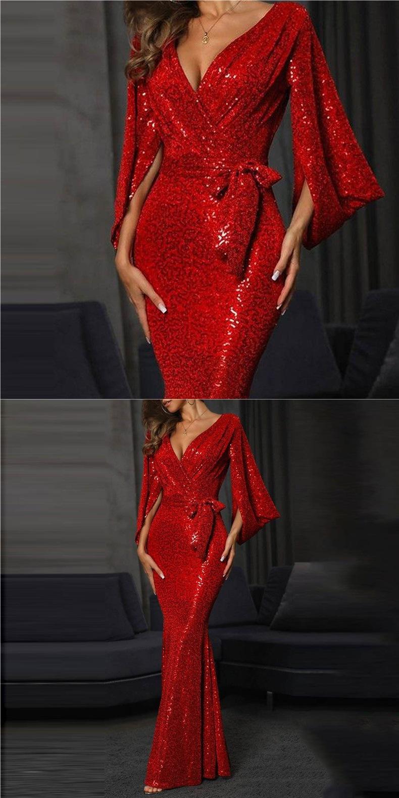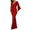Vestido Sexy con Abertura de Color Puro y Lentejuelas hasta el Suelo para Noche, Falda de Vestido de Noche de Exportación Transfronteriza Nueva Europea y Americana Primavera-Verano 2025