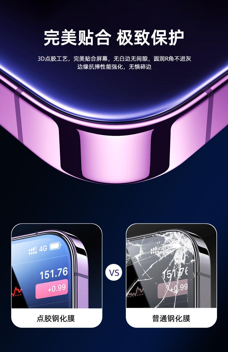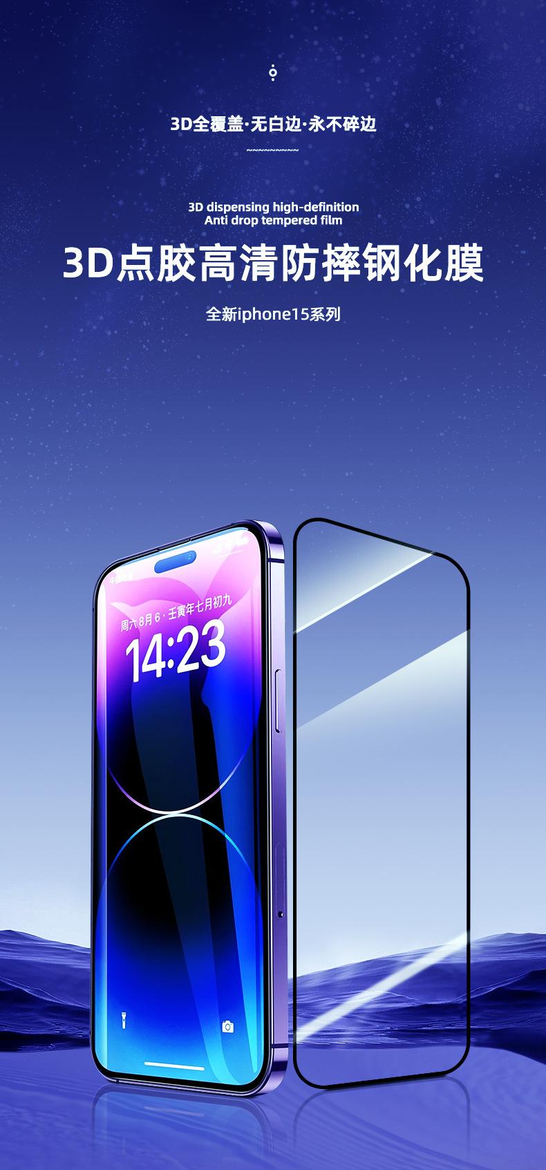 Adecuado para Iphone14 Película Templada de Arco Grande con Pegamento 3D Grabado Apple 14Pro Cobertura de Pantalla Completa Protección para Teléfono Móvil