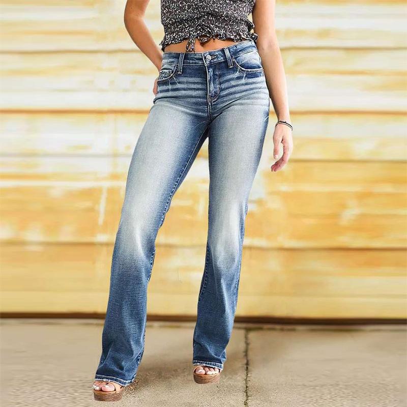 Ventas Directas de Fábrica 2025 Exportación Transfronteriza Jeans de Mujer Europeos y Americanos Elegantes Versátiles Lavados Pantalones Casuales Pantalones de Mezclilla