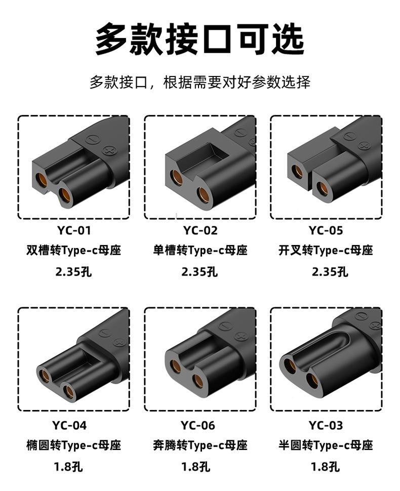 YC-01 double slot, YC-02 single slot, YC-03 semicircle, YC-04 Ellipse, YC-05 Split, YC-06 Pentium, 6 sets