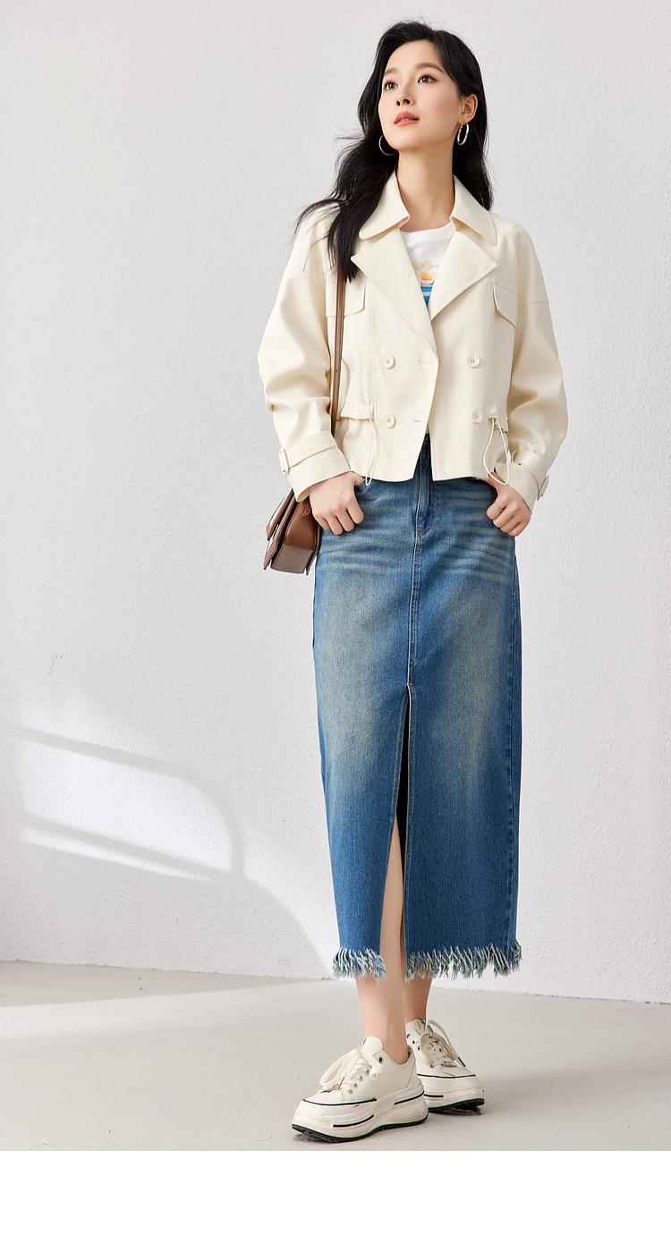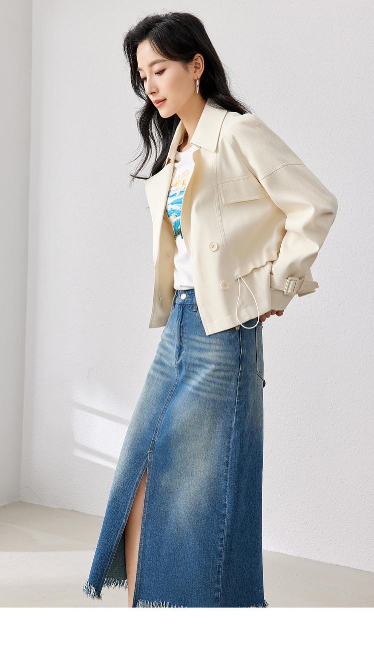 Zhenqi nuevo abrigo pequeño de moda con cuello de solapa para mujer, manga larga, recto, adelgazante, nicho, CN399