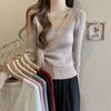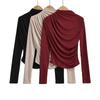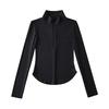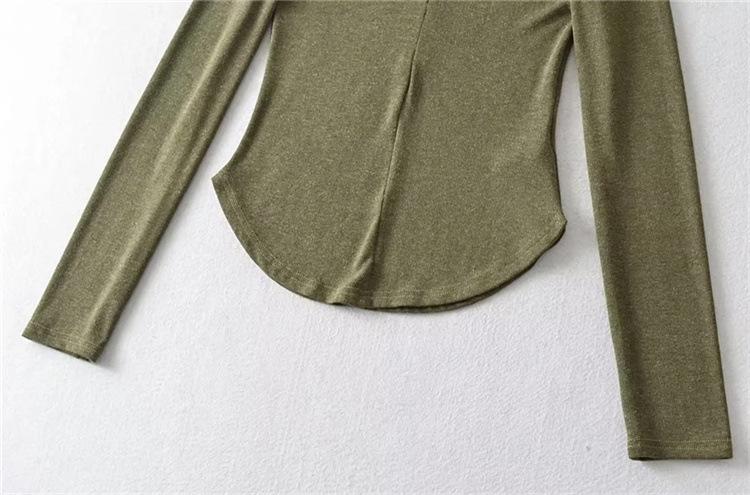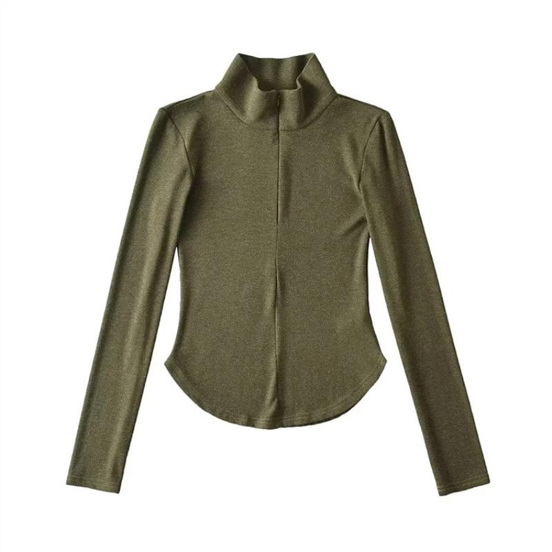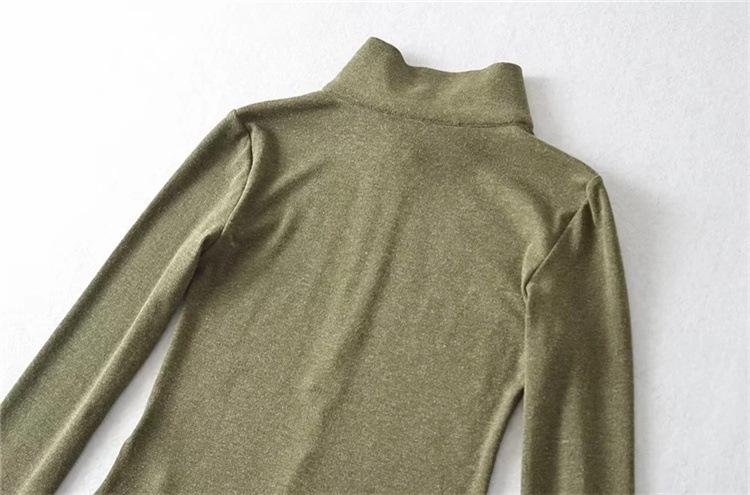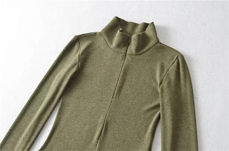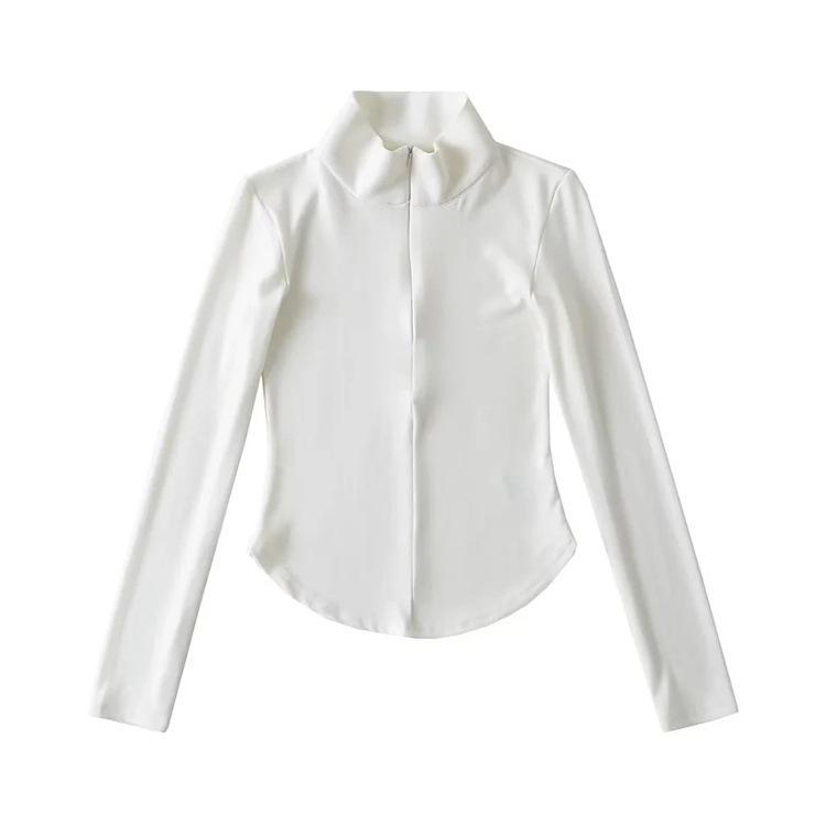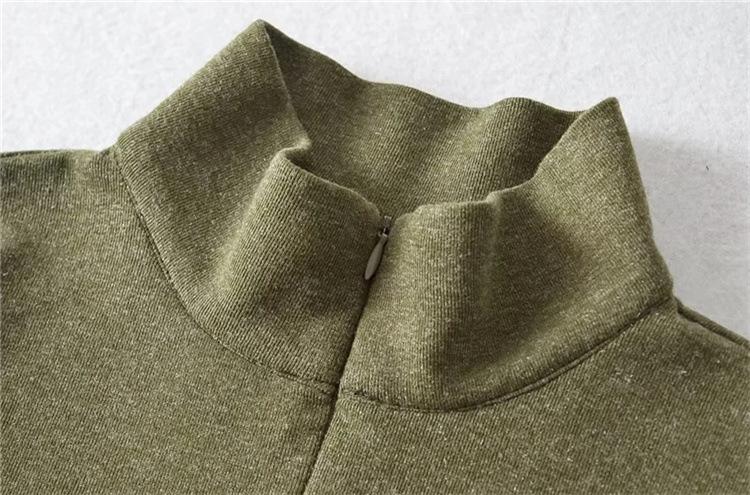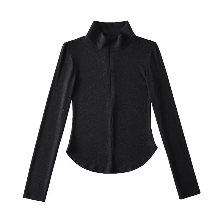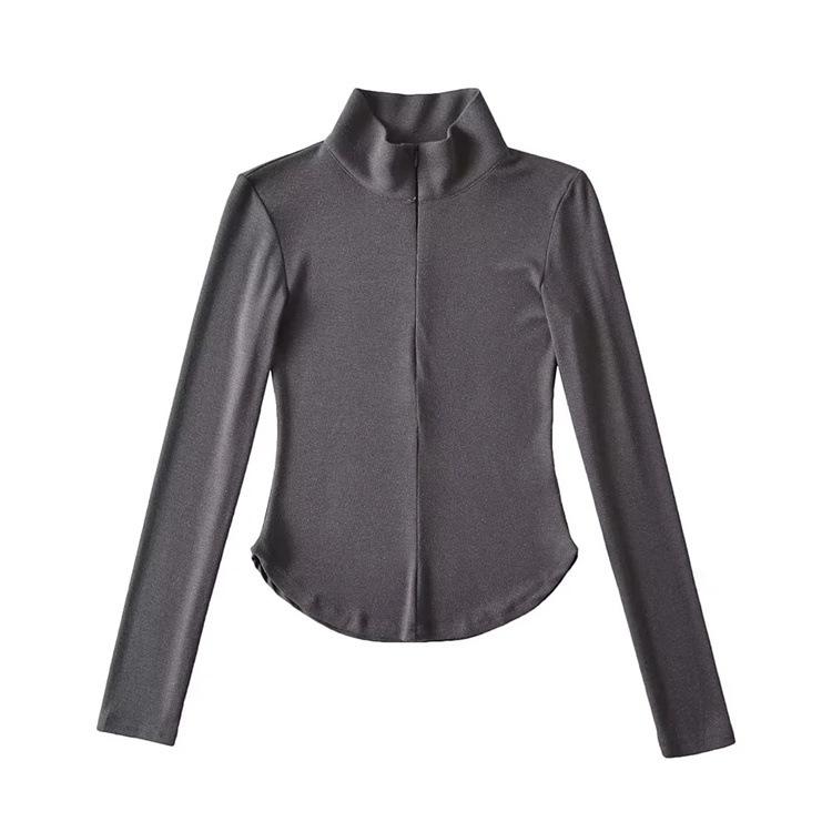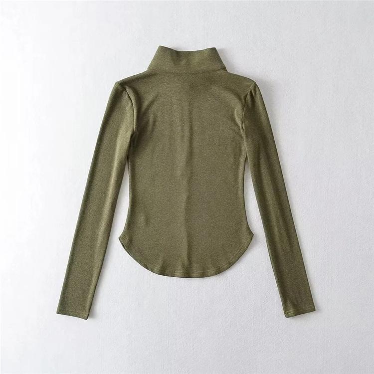 Camiseta básica de media cremallera en la cintura de avispa Estilo europeo y americano para mujer Otoño e Invierno Nueva color puro Curva Ajustada