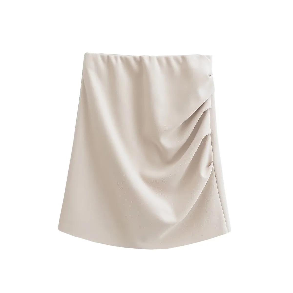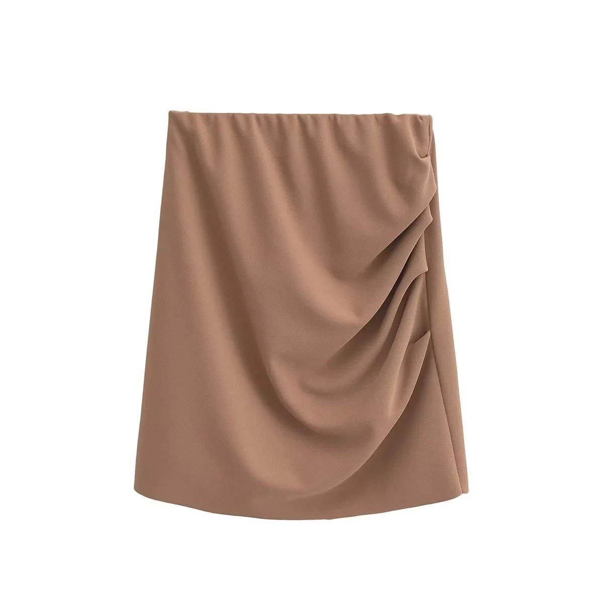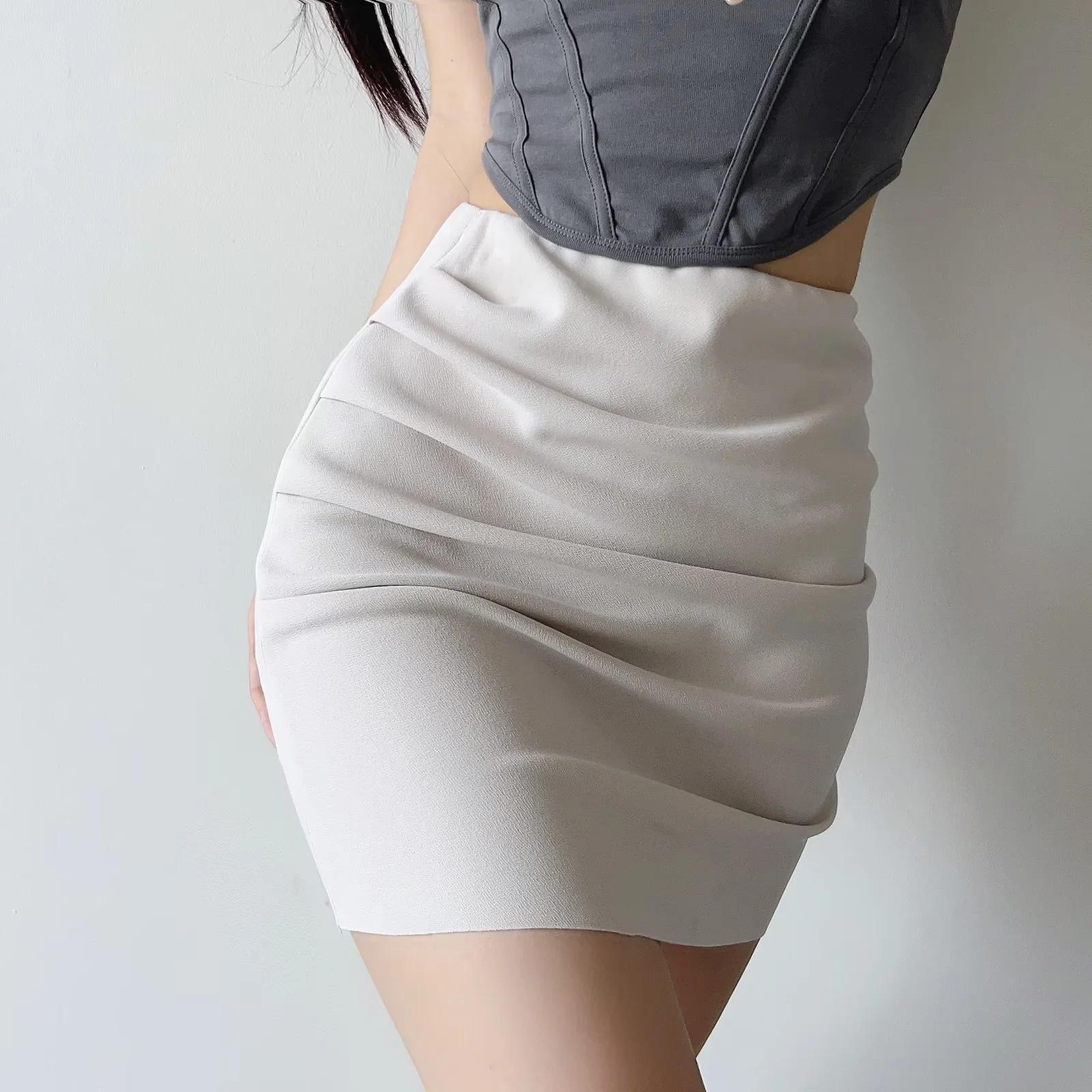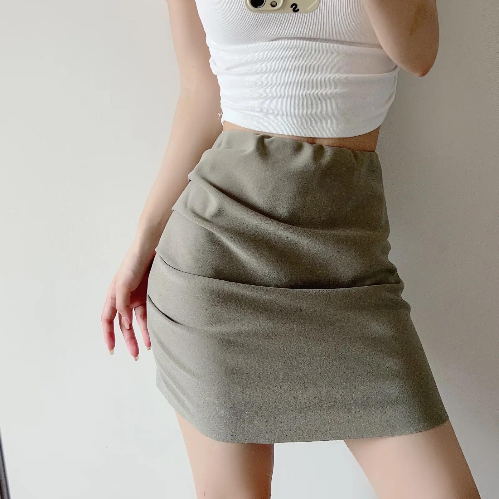 Falda Elegante de Viaje de Cintura Alta Plisada en Capas Estilo Francés 2023 Nueva Ajustada Elástica Línea A Falda de Cadera