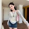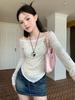 Blusa de manga larga con hombros descubiertos para mujer, estilo americano, estilo sexy, con protección solar, estilo informal, entallada y adelgazante, ideal para primavera y otoño.