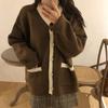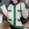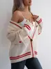 Suéter retro holgado con cuello en contraste de color para mujer, otoño 2023, estilo japonés, cárdigan de punto holgado y combinable, a la moda