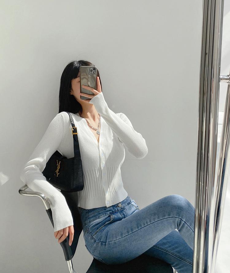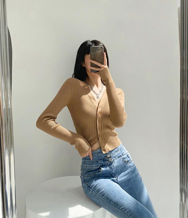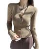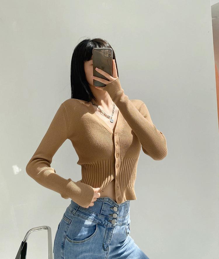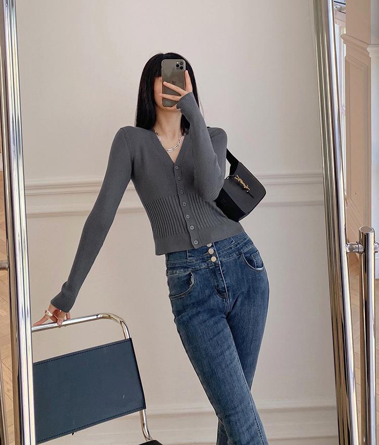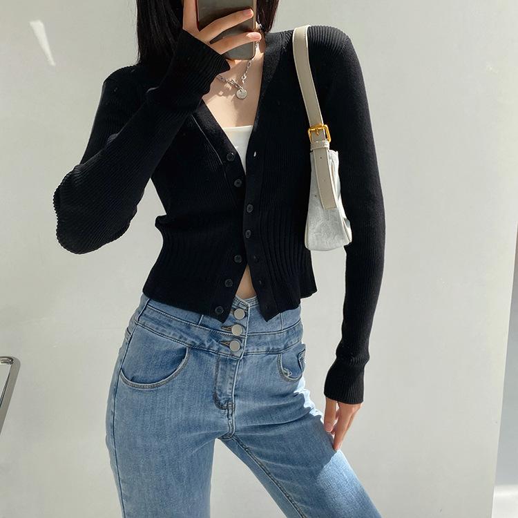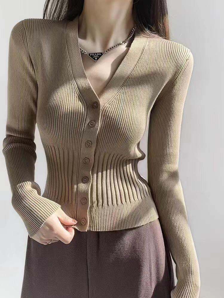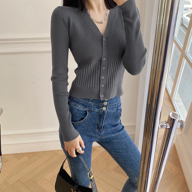 Cárdigan de punto con cuello en V vintage, grueso y de buena calidad, para mujer, otoño e invierno, elástico, de un solo pecho, 2023