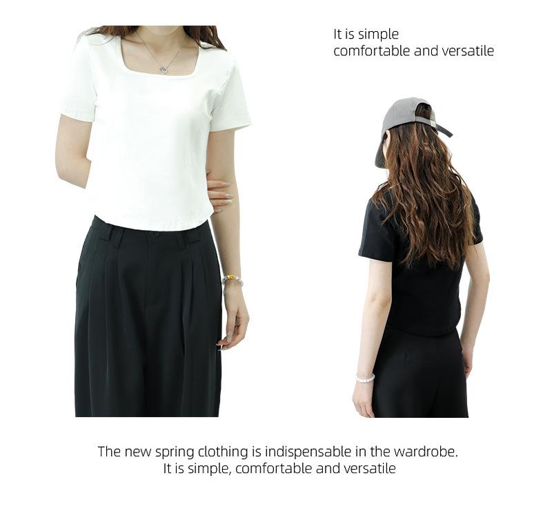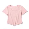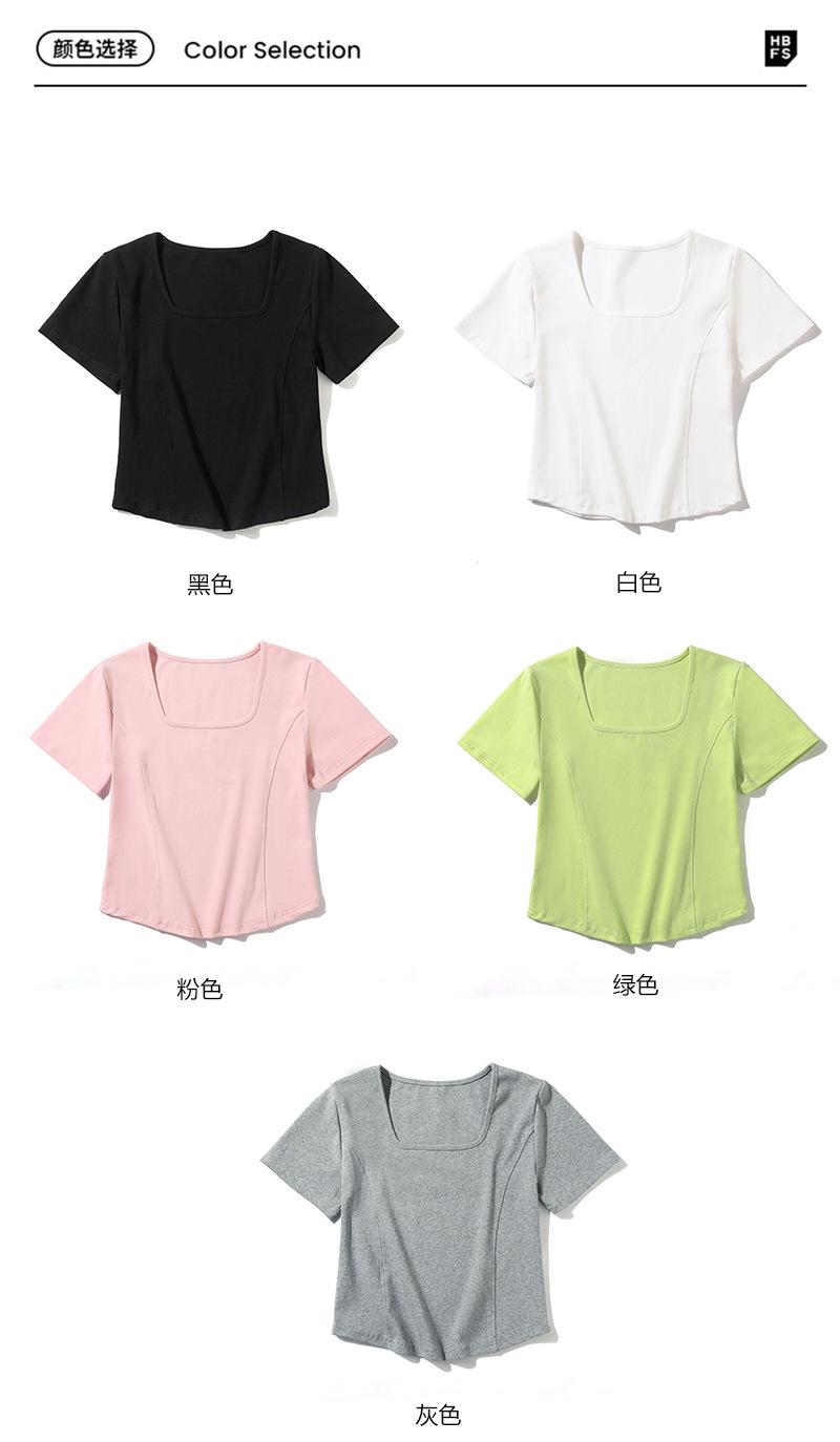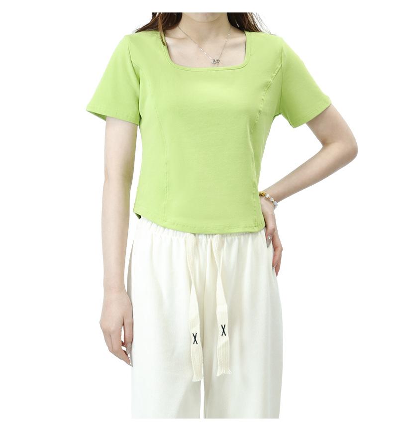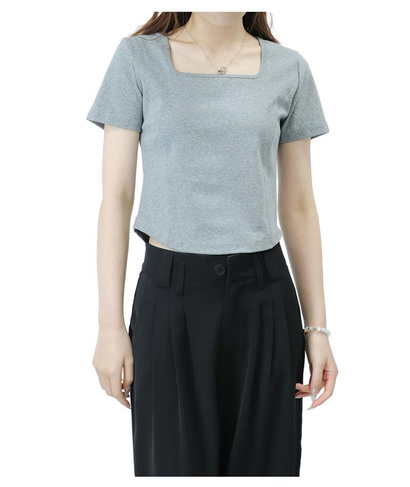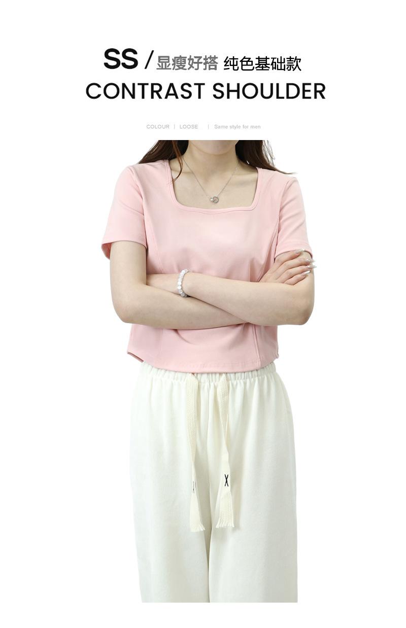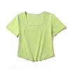 Camiseta de manga corta ajustada con cuello cuadrado y hombros descubiertos para mujer, estilo veraniego, dulce y picante, para adelgazar, top corto ajustado.