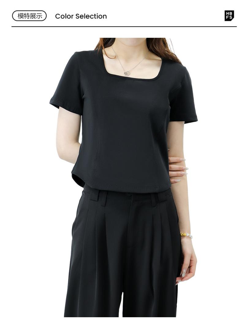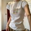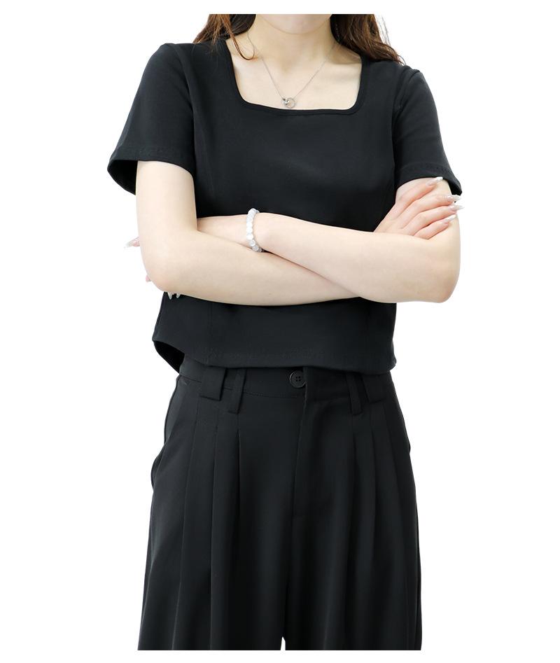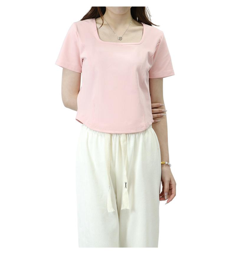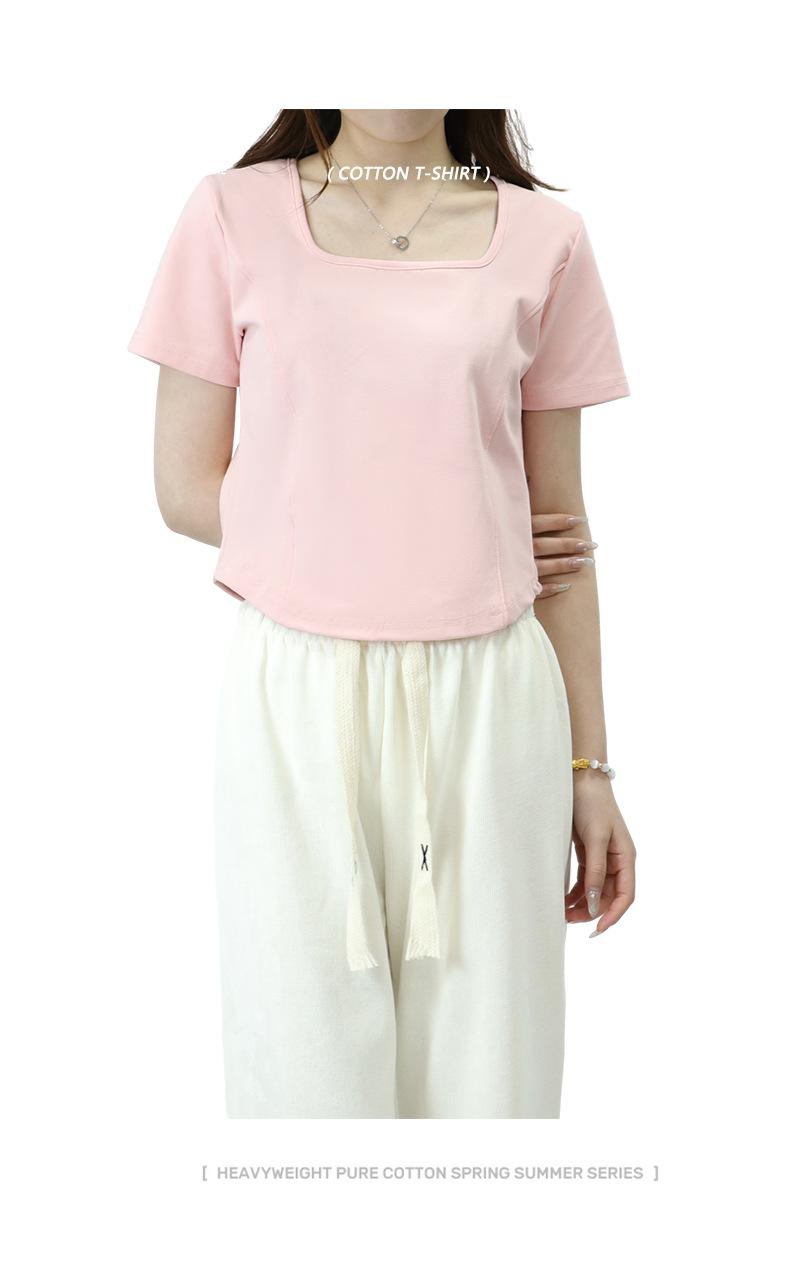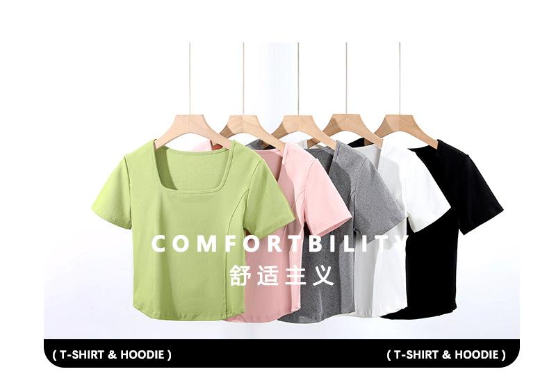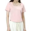 Camiseta de manga corta ajustada con cuello cuadrado y hombros descubiertos para mujer, estilo veraniego, dulce y picante, para adelgazar, top corto ajustado.
